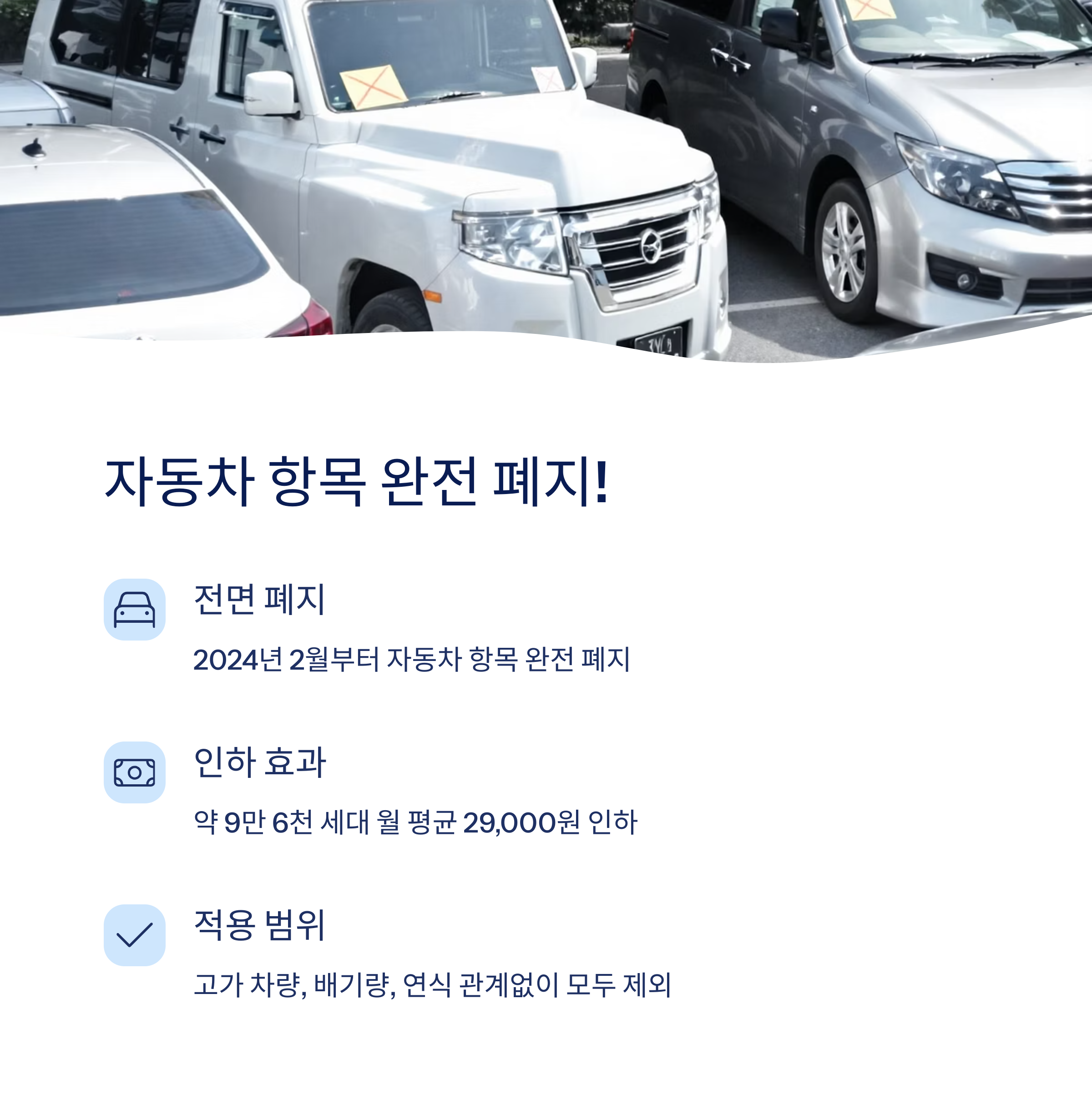 - 2024년 2월부터 자동차 항목 완전 폐지
