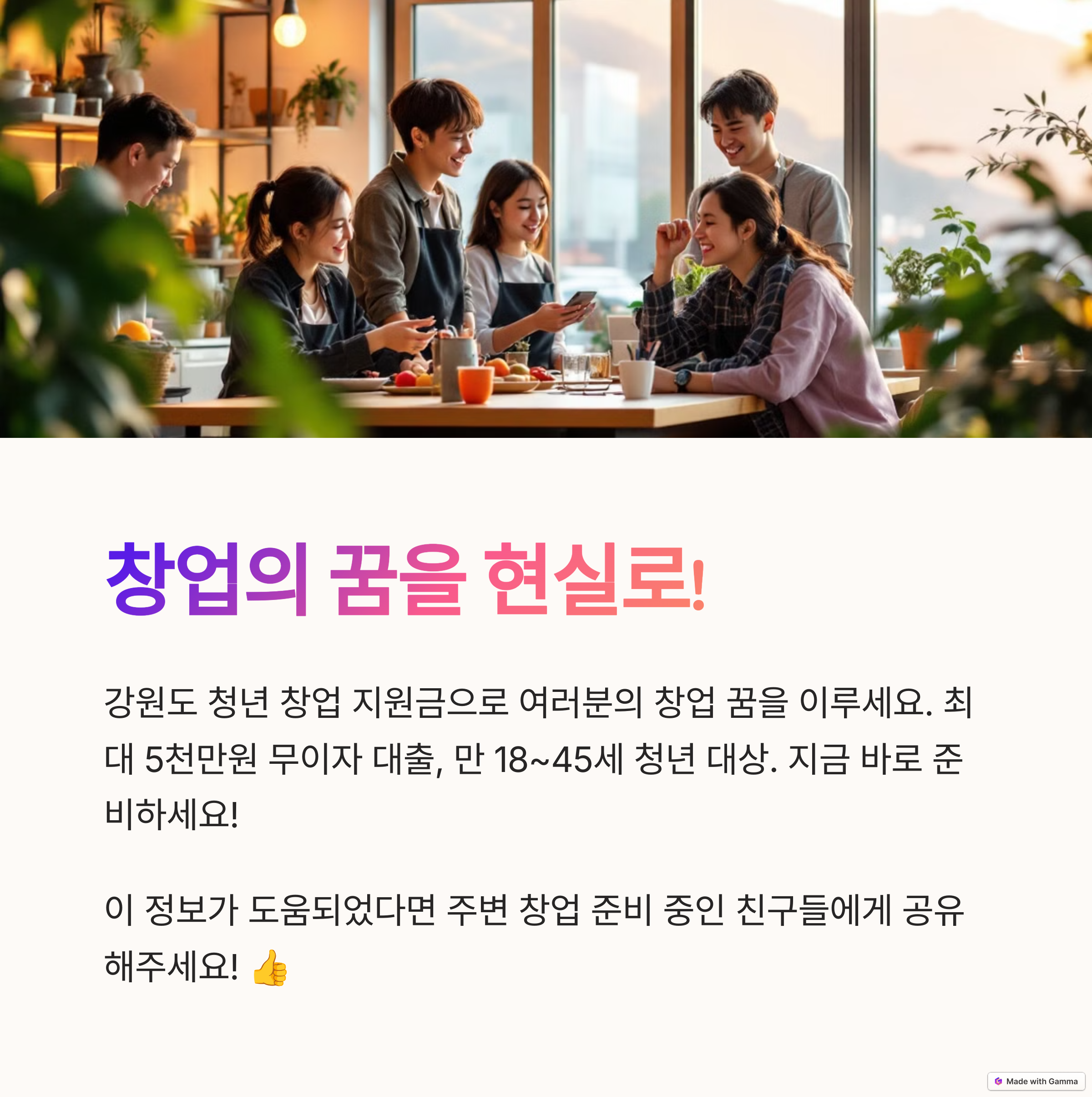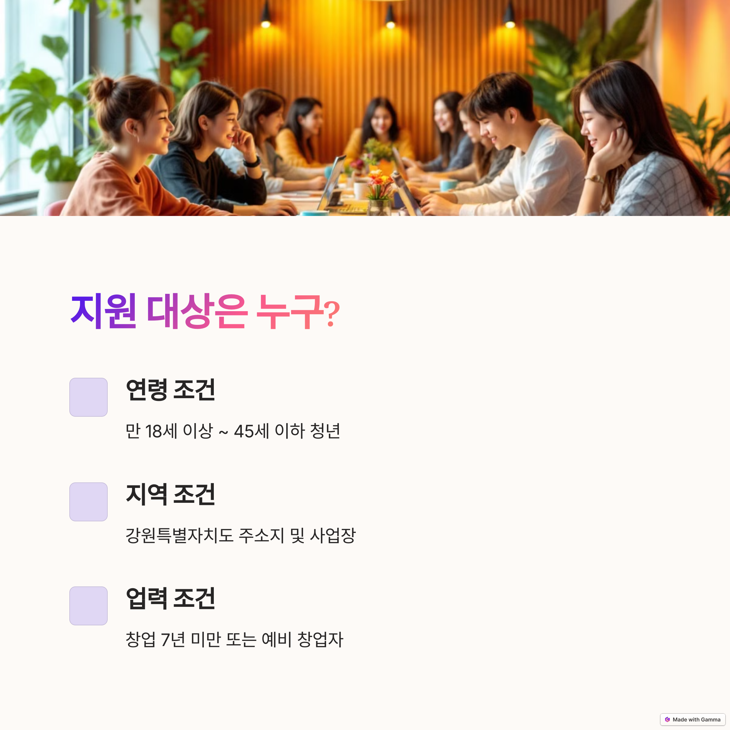 📌 지원 대상: 강원도 거주 18~45세 청년, 업력 7년 미만
