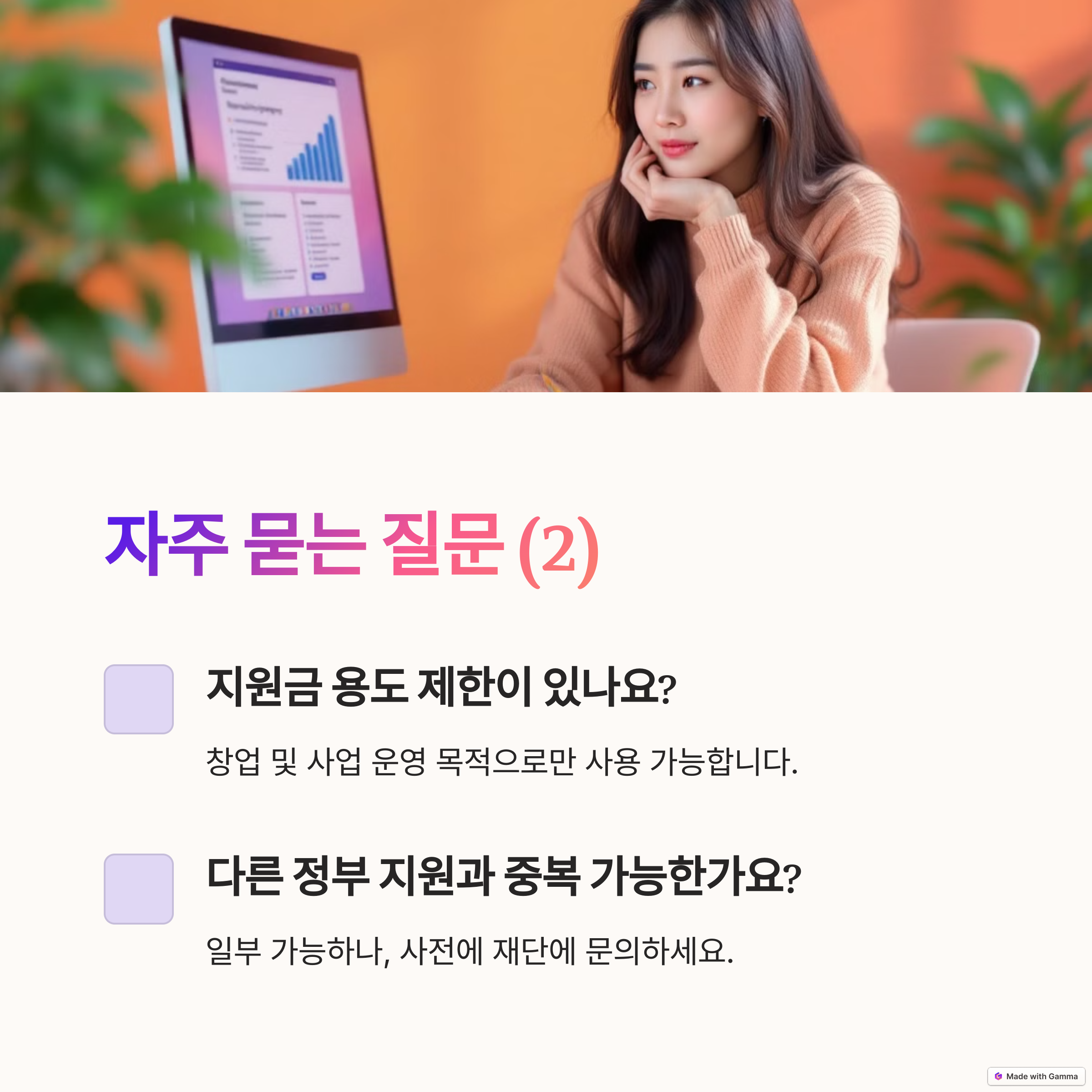 A4. 아닙니다. 창업 및 사업 운영 목적으로만 사용해야 하며, 부적절한 사용이 확인될 경우 지원금 회수 조치가 이루어질 수 있습니다.