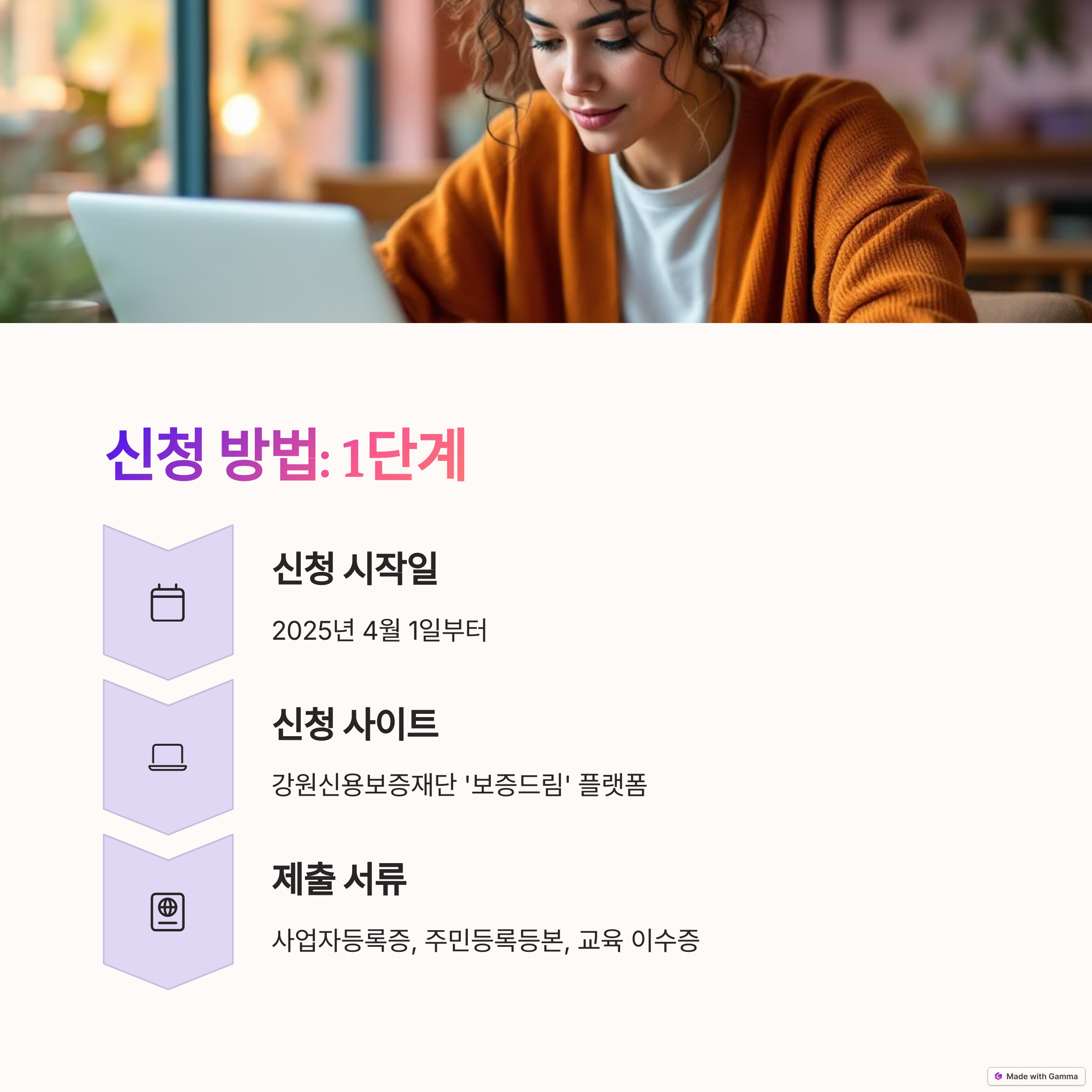 - 신청 사이트: 강원신용보증재단 ‘보증드림’ 플랫폼