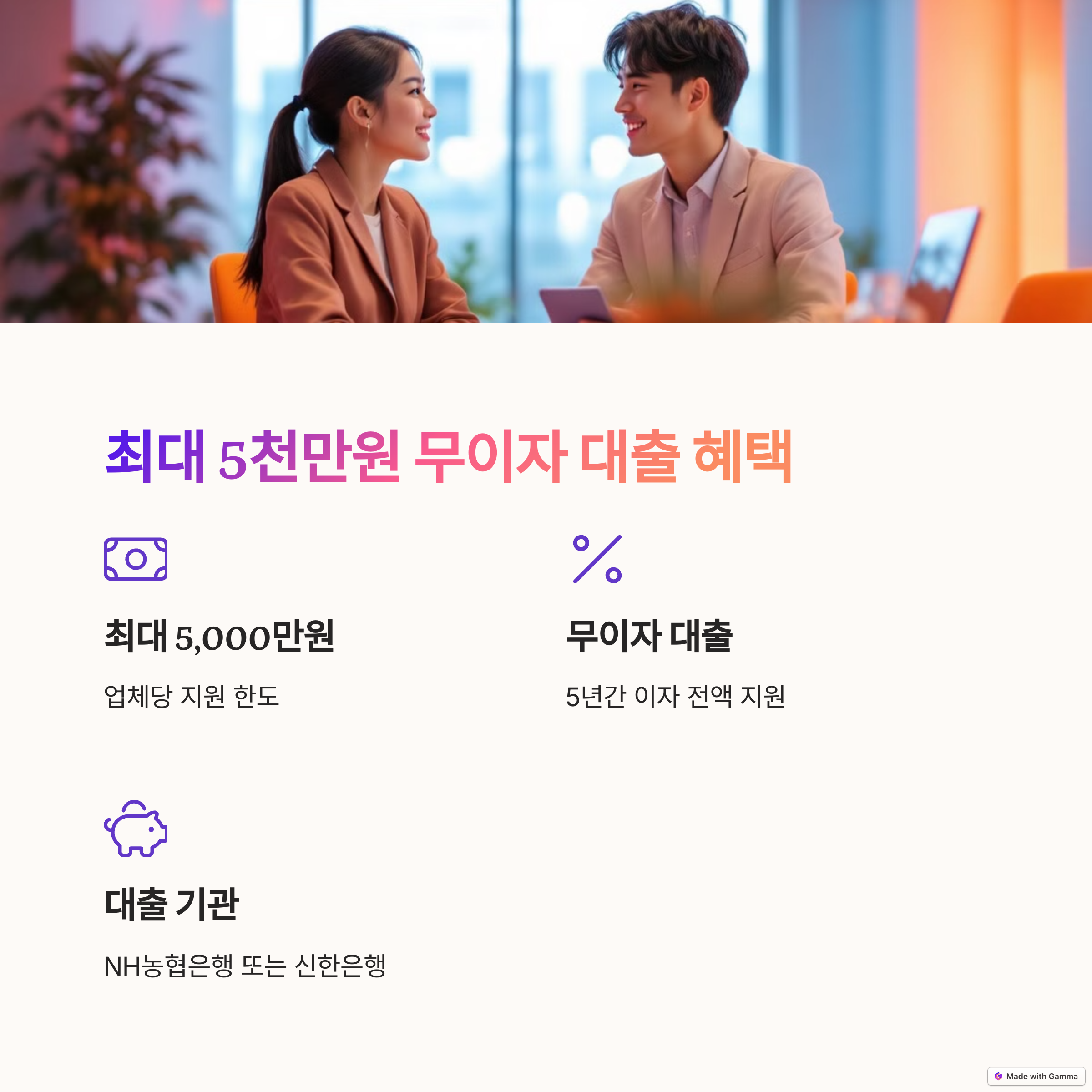 📌 지원 내용: 최대 5천만 원 대출, 5년간 이자 전액 지원
