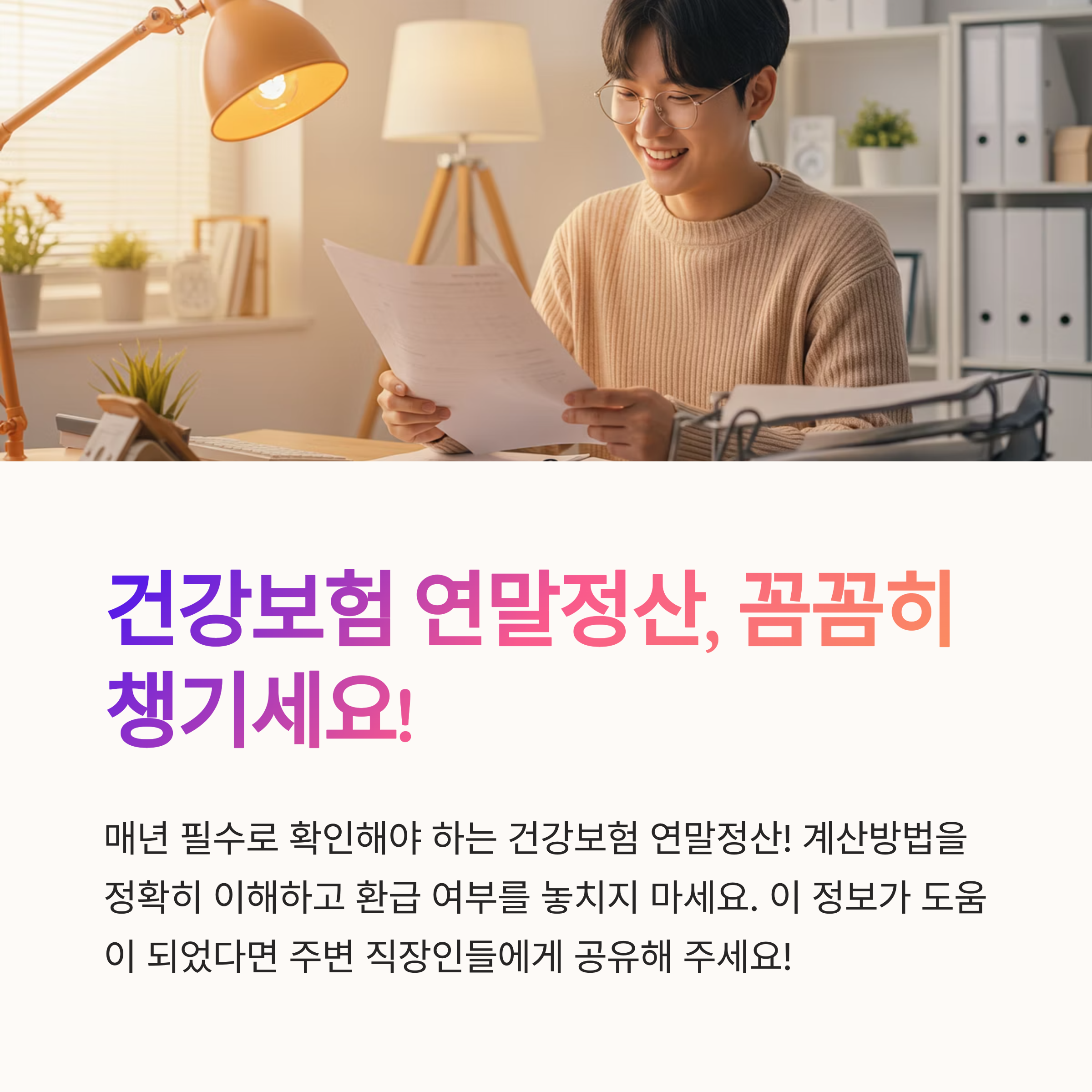 직장인이 꼭 알아야 할 건강보험 연말정산! 매년 급여에서 공제된 보험료와 실제 내야 할 보험료의 차이를 정산하는 중요한 절차입니다. 계산 방법부터 건강보험 연말정산 분할납부 신청, 환급 확인까지, 한 번에 정리해 드릴게요.