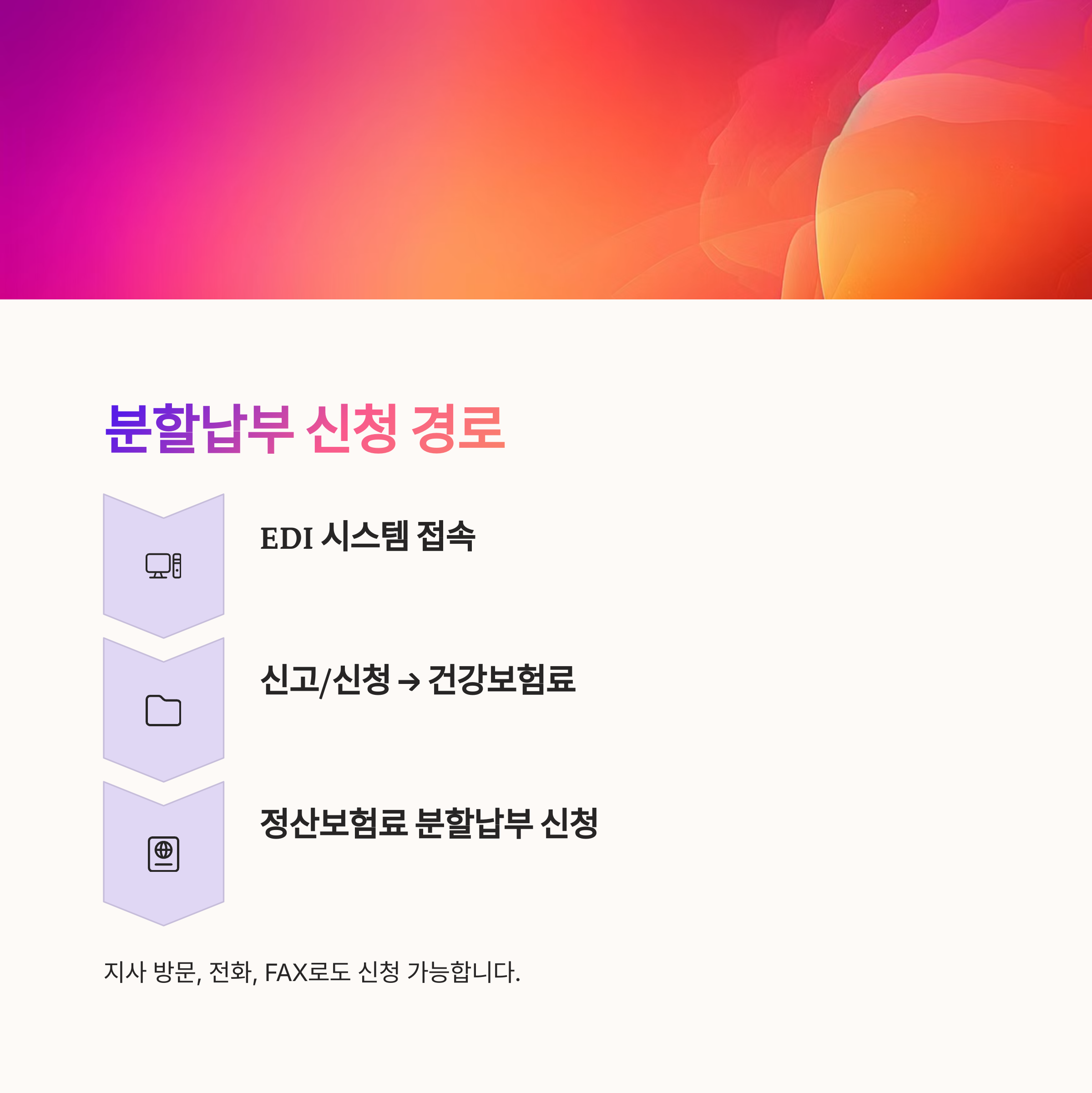 - EDI 경로: 신고/신청 → 건강보험료 → 정산보험료 분할납부 신청