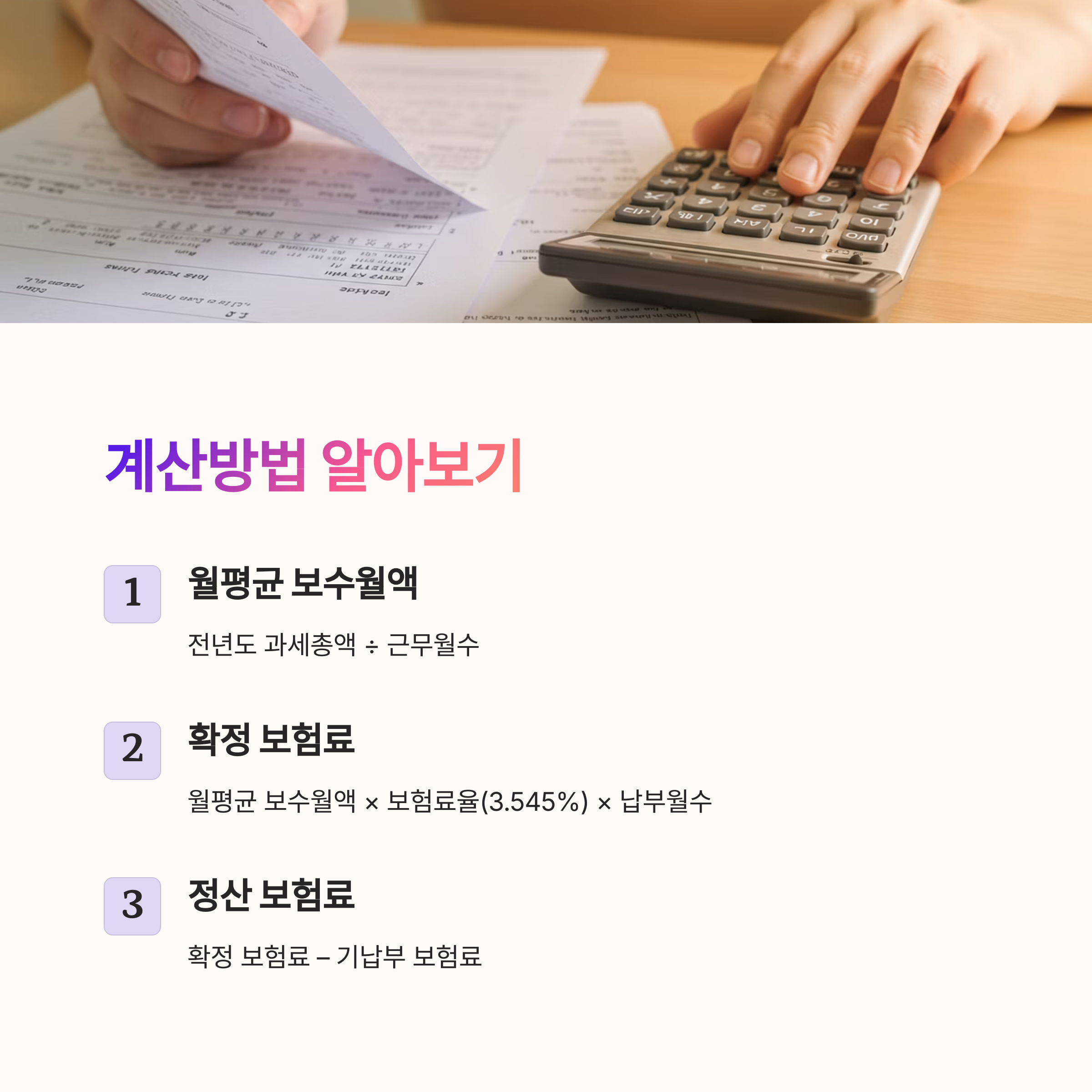 확정 보험료 = 월평균 보수월액 × 보험료율(2024년 기준 3.545%) × 납부월수