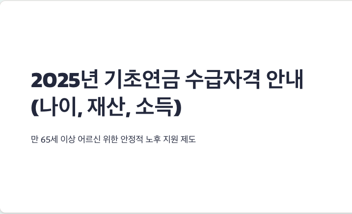 기초연금은 만 65세 이상의 어르신에게 안정적인 노후를 지원하기 위해 제공되는 중요한 복지 제도입니다. 하지만 소득, 재산, 자녀 소득 등 여러 기준을 충족해야 하기 때문에 정확한 정보를 아는 것이 중요합니다. 이 글에서는 2025년 기준으로 기초연금 수급 자격과 관련된 내용을 상세히 안내드립니다.
