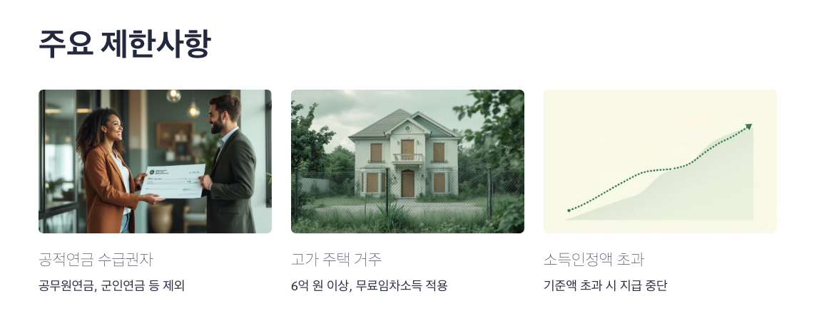 - 제외 대상: 공무원연금, 군인연금 등 기타 공적연금 수급권자 및 그 배우자