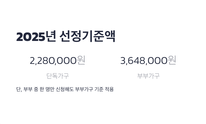 | 2025년 선정기준액 | 2,280,000원 | 3,648,000원 |