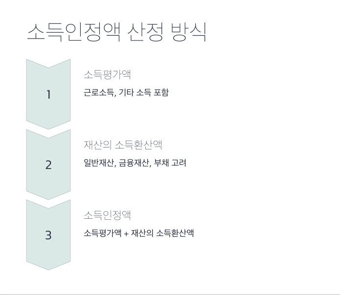- 공식: 소득평가액 = {0.7 × (근로소득 - 110만 원)} + 기타 소득