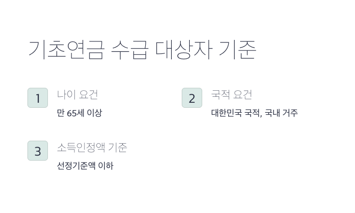 기초연금을 받으려면 다음 세 가지 요건을 충족해야 합니다