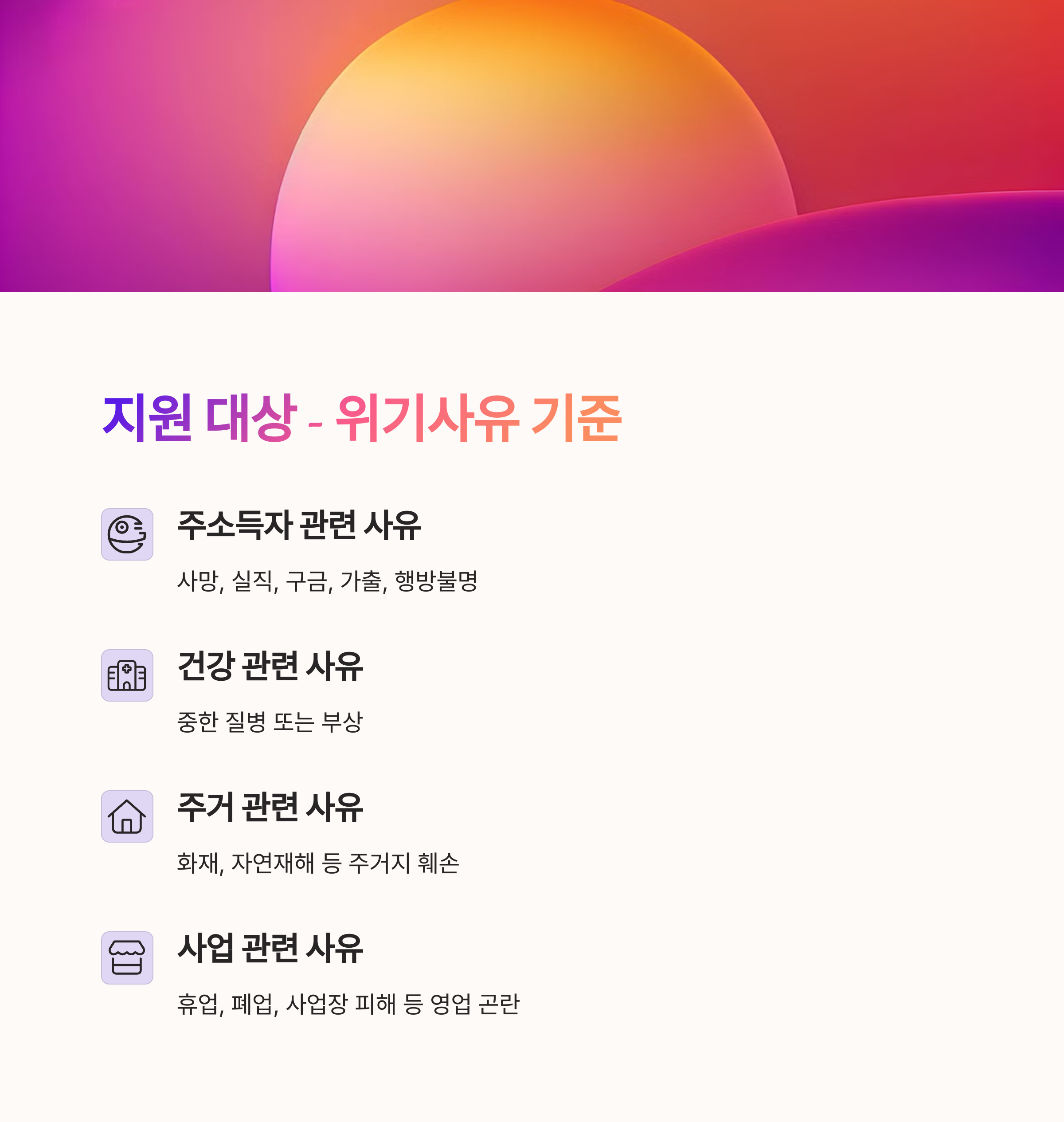 긴급복지 생계지원금 대상 (위기사유 기준)