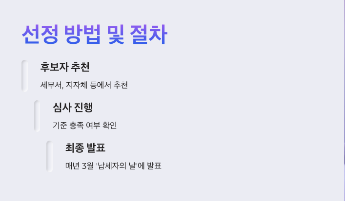 - 최종 선정 및 발표 (매년 3월 ‘납세자의 날’에 발표)