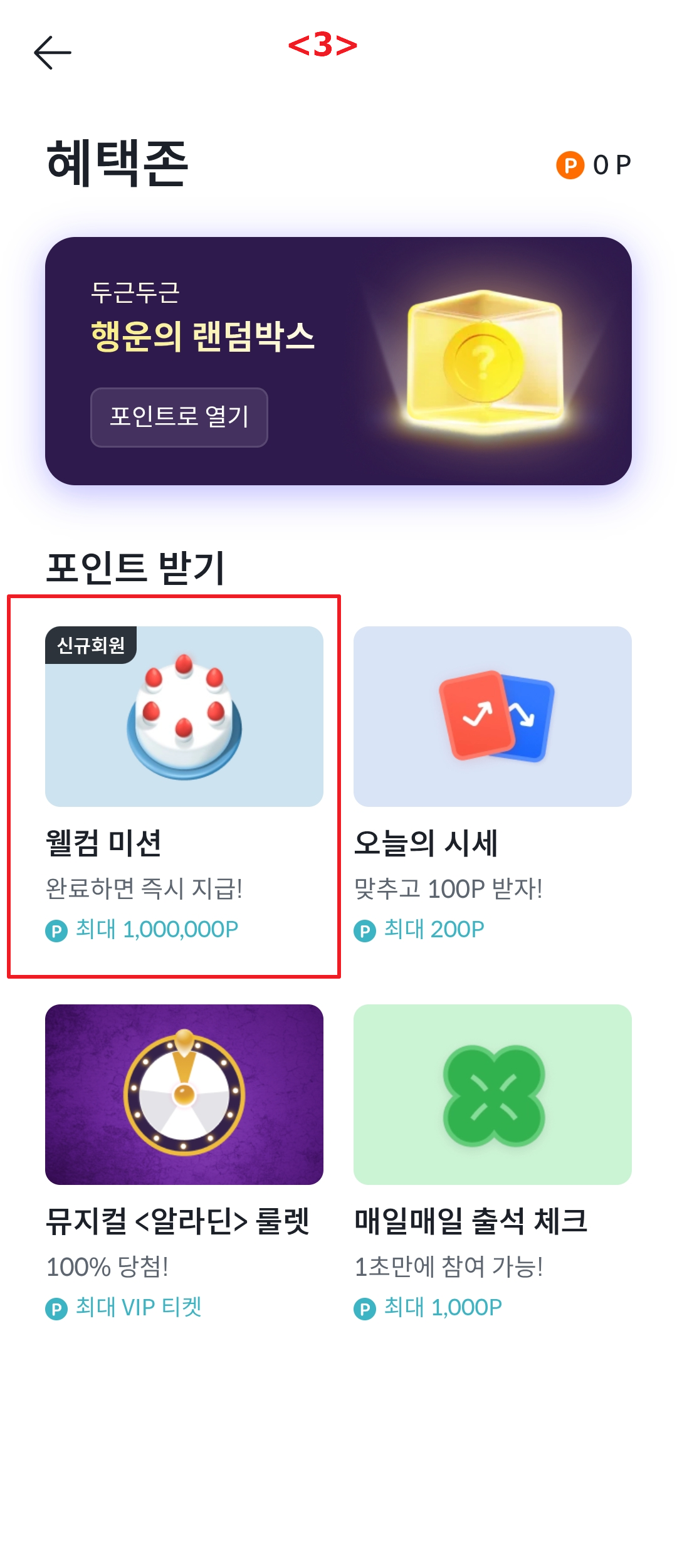 <3> 웰컴 미션 누르세요.