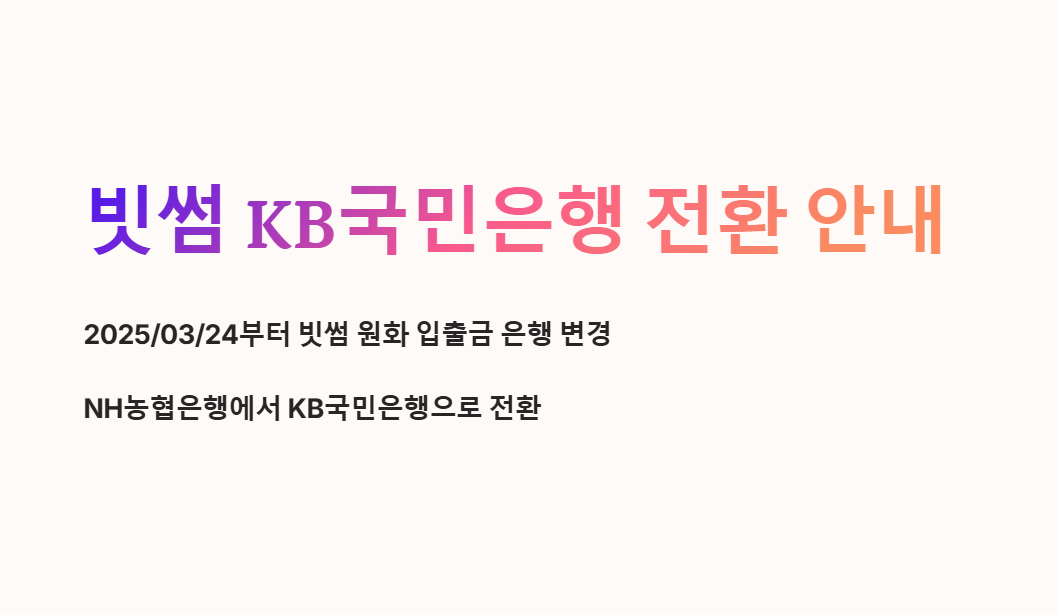 빗썸 계좌를 개설해서 가상자산을 거래하시는 분들이 많습니다. 기존에는 농협은행으로 연결해서 사용하셨을텐데요. 2025년 3월 24일부터 빗썸의 원화 입출금 은행이 기존 NH농협은행 → KB국민은행으로 변경됩니다. 모든 빗썸 고객은 KB국민은행 실명계정 연결해야 합니다. 2025년 1월 20일부터 사전등록이 시작되었는데, 사전등록을 완료하면 전환 후에도 모든 서비스를 문제없이 이용할 수 있습니다. 특히 이번에는 사전 등록 후에 총 100억을 주는 이벤트도 있으니 꼭 잊지말고 빠르게 신청하시기 바랍니다! 🚀