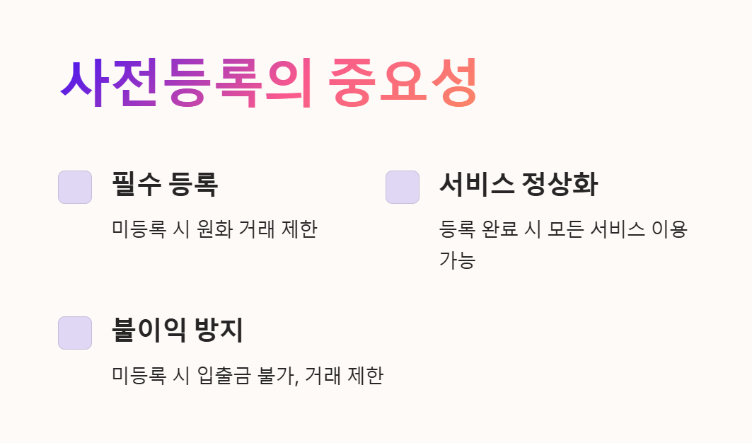 ✔️ 사전등록 필수! 안 하면 원화거래 불가능 🚫