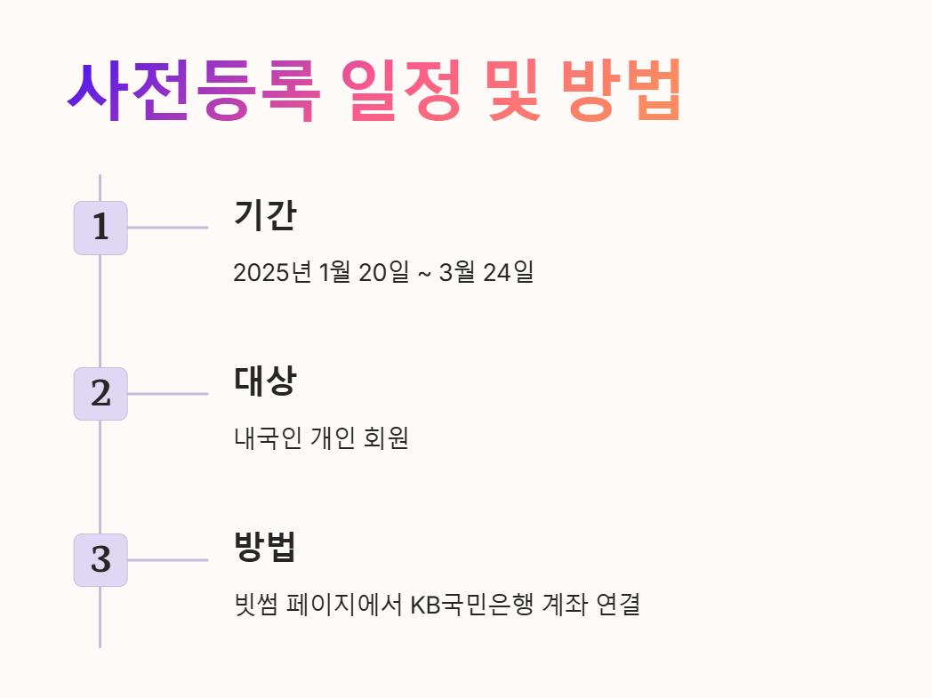 - 사전등록 기간: 2025년 1월 20일(월) 09:00 ~ 2025년 3월 24일(월) 00:00