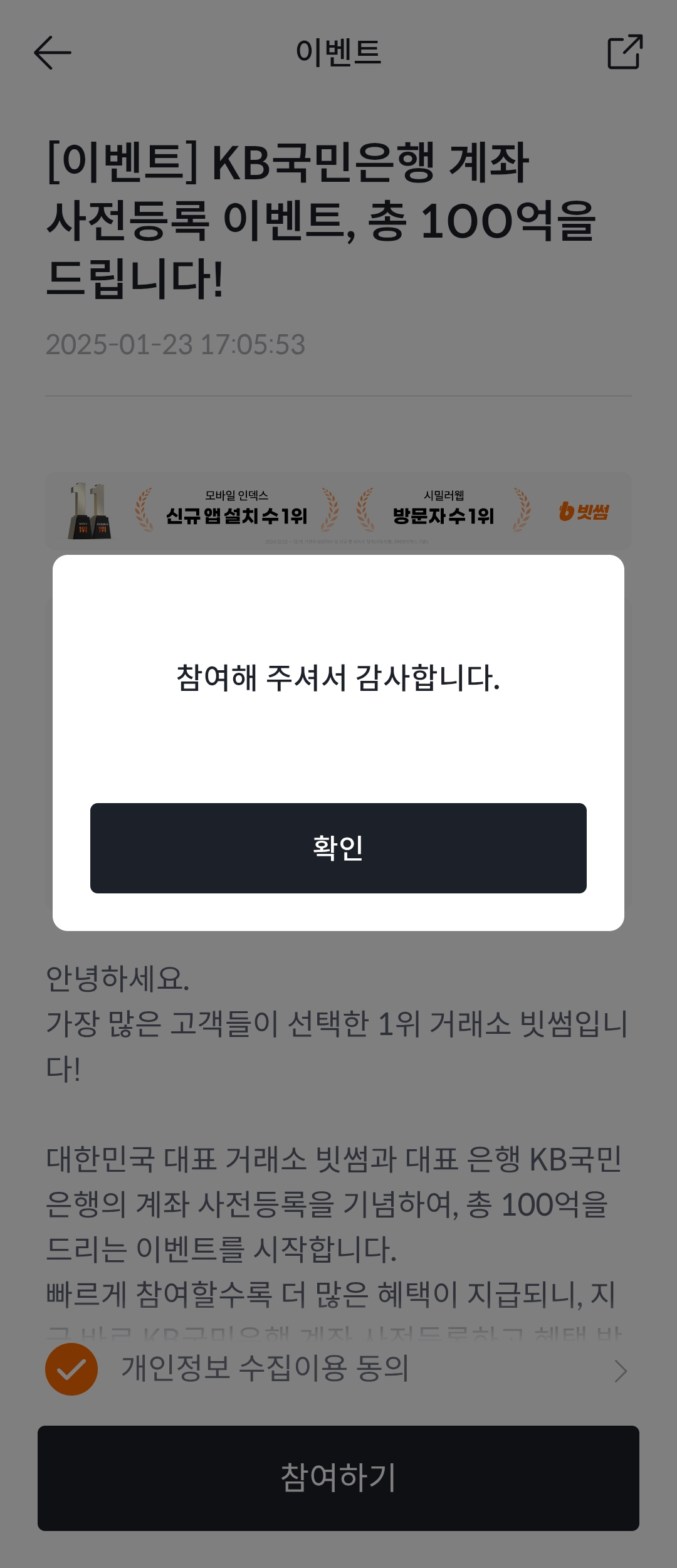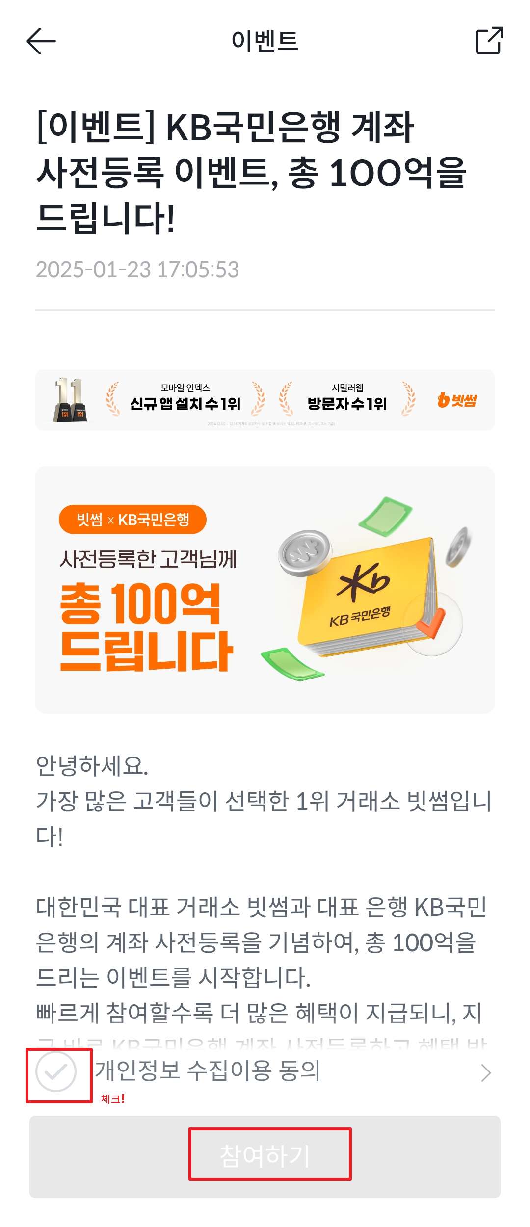 빗썸 이벤트 국민은행 계좌 사전등록 참여방법