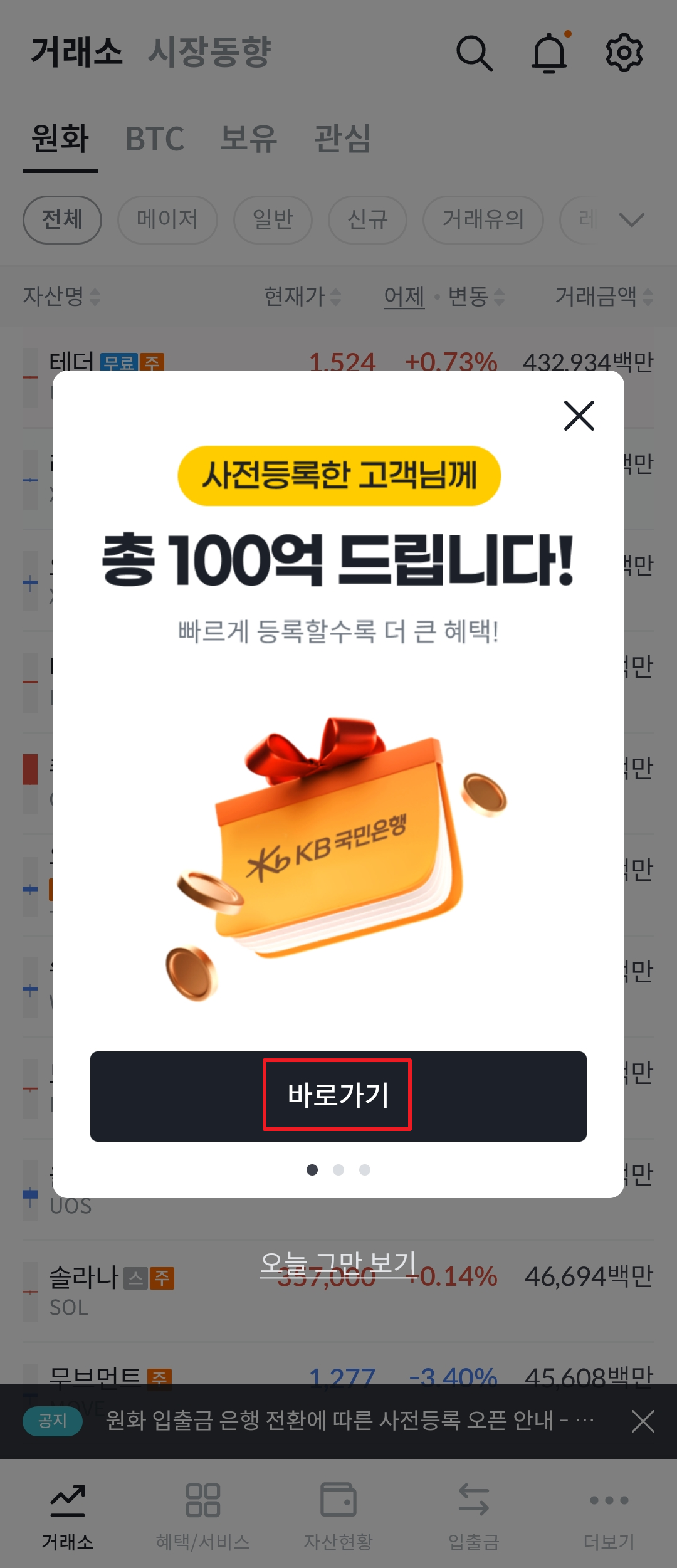 빗썸에서 국민은행 계좌를 사전등록하면 총 100억원 상당의 리워드를 제공하는 이벤트를 진행합니다. 이 이벤트에 참여하려면, 국민은행 계좌를 사전등록을 해야하는데요. 빗썸앱에서 시작해서