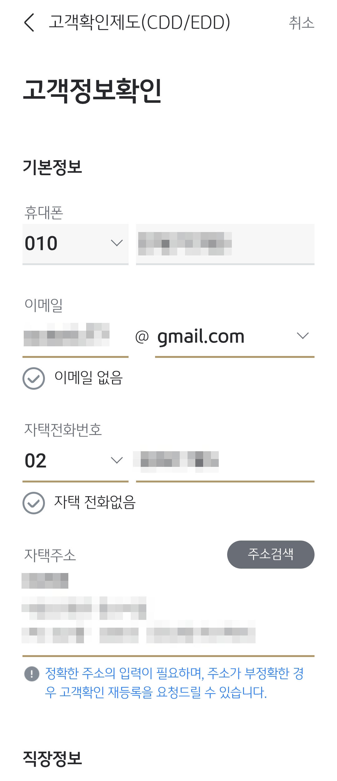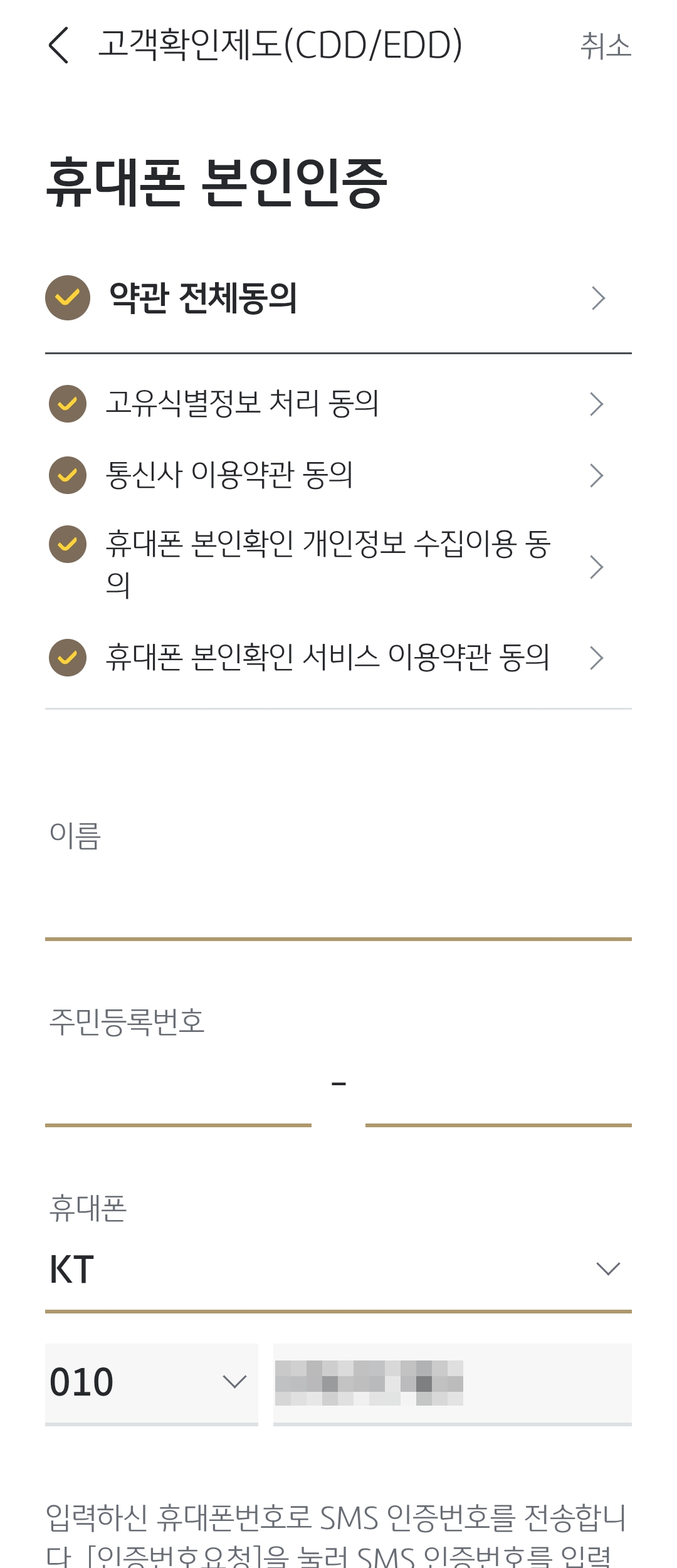 3. 고객확인(휴대폰인증, 고객정보 확인, 고객확인정보 입력)