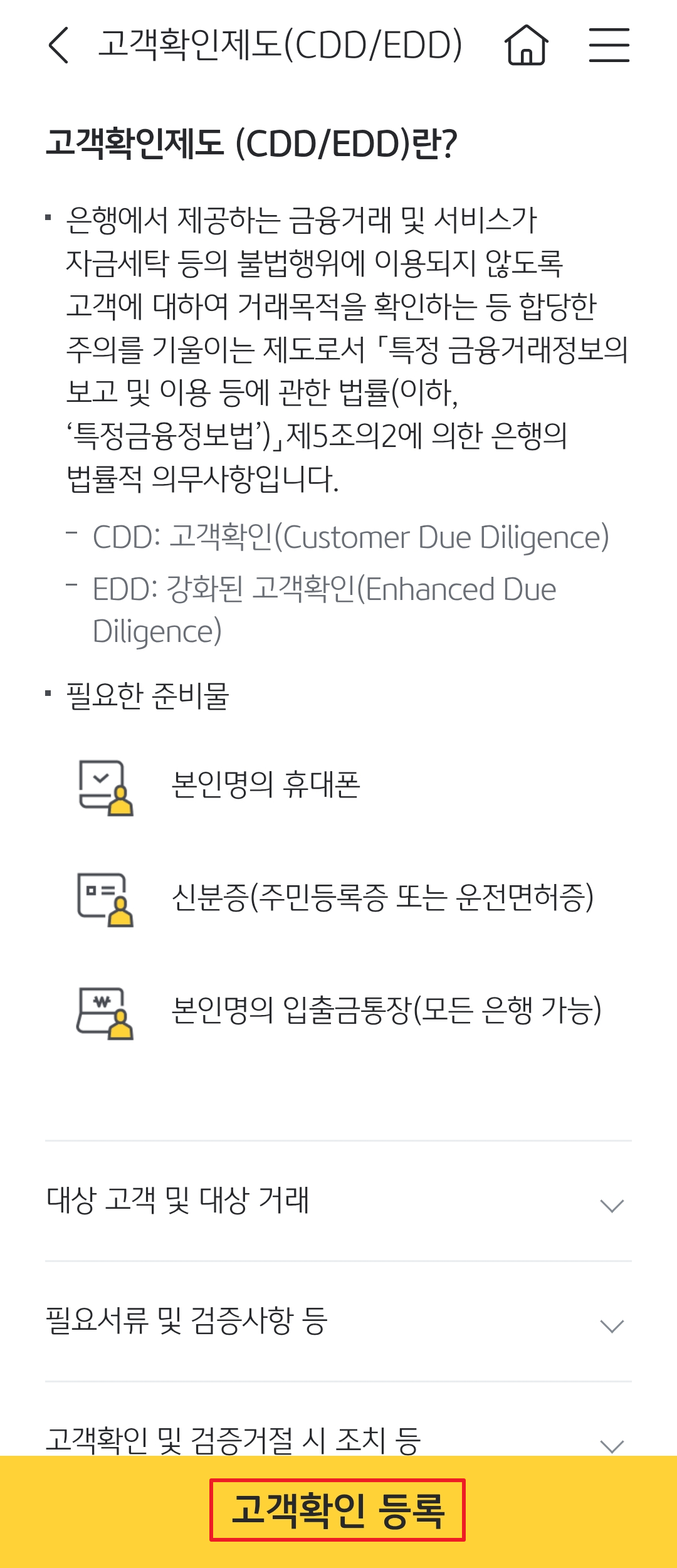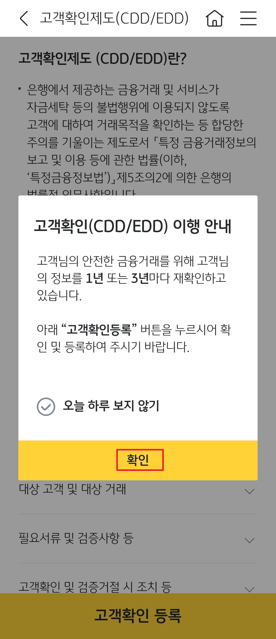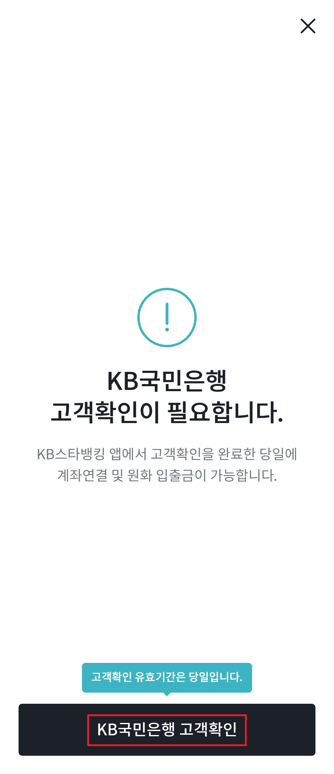 계좌 인증전에, KB국민은행 앱에서 고객확인을 먼저 진행합니다.