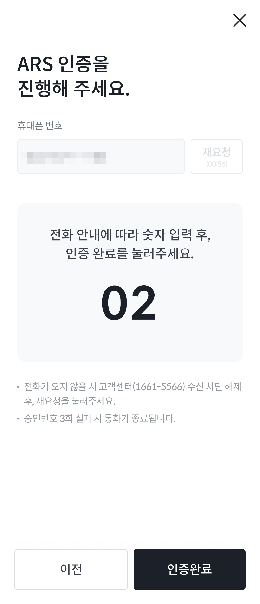 ARS 인증을 완료하고, 빗썸에서 알림톡이 도착하면 사전등록이 완료됩니다.