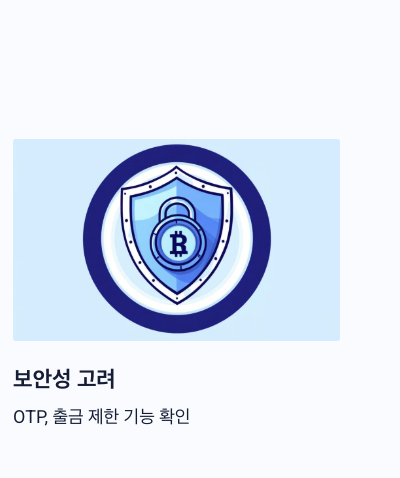 - 보안성: OTP 인증, 출금 제한 기능 제공 여부