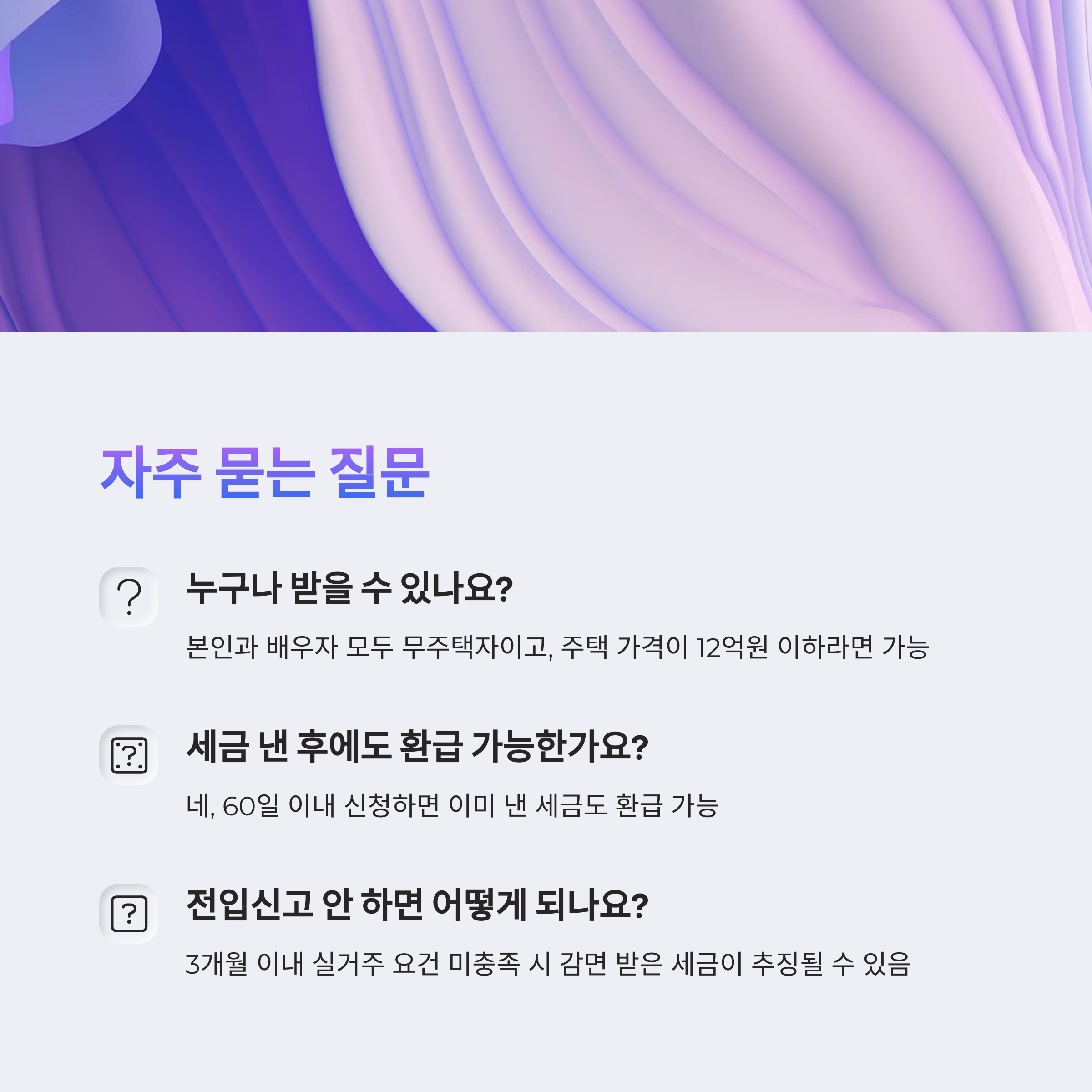 Q1. 생애최초주택구입 취득세 면제는 누구나 받을 수 있나요?