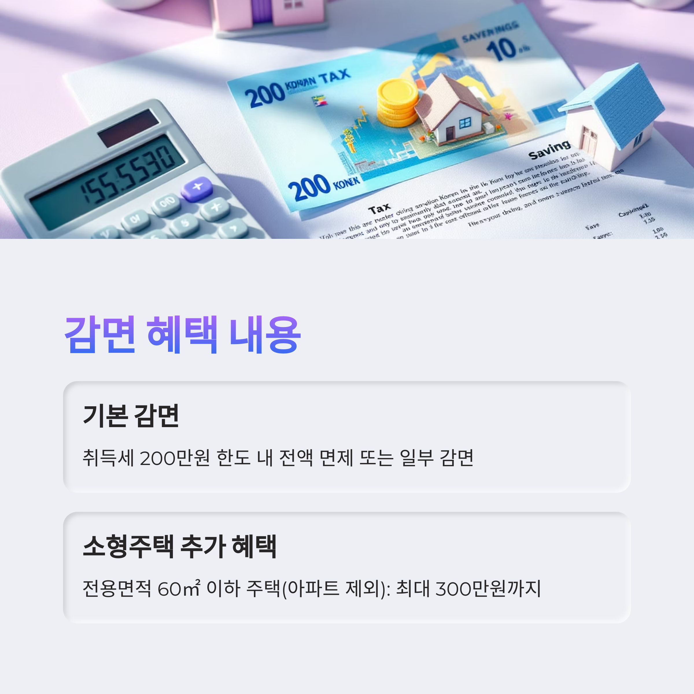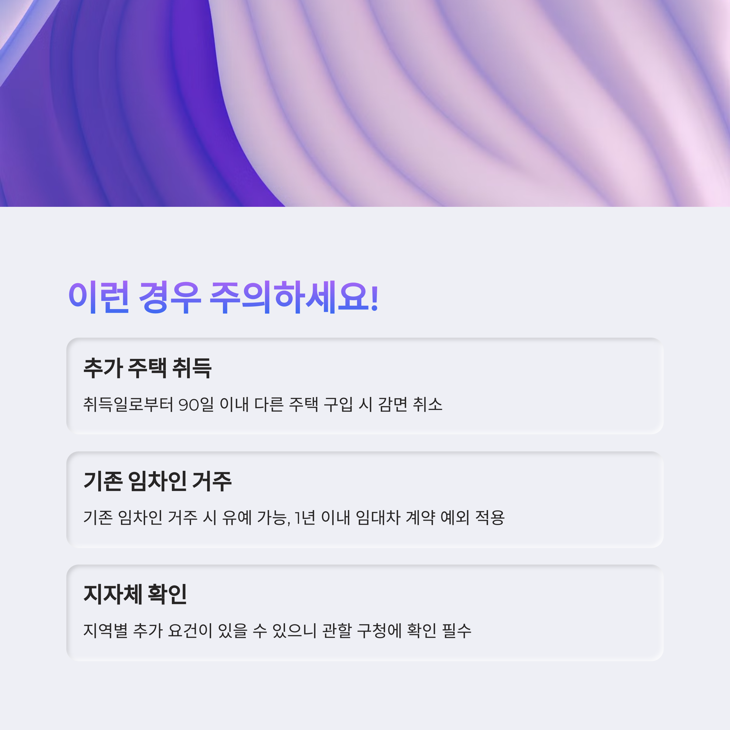 💡 특히 아파트 외의 소형주택 구입을 고려 중인 분들은 2025년부터 감면 한도가 300만 원으로 확대되니 더 큰 혜택을 기대할 수 있습니다.