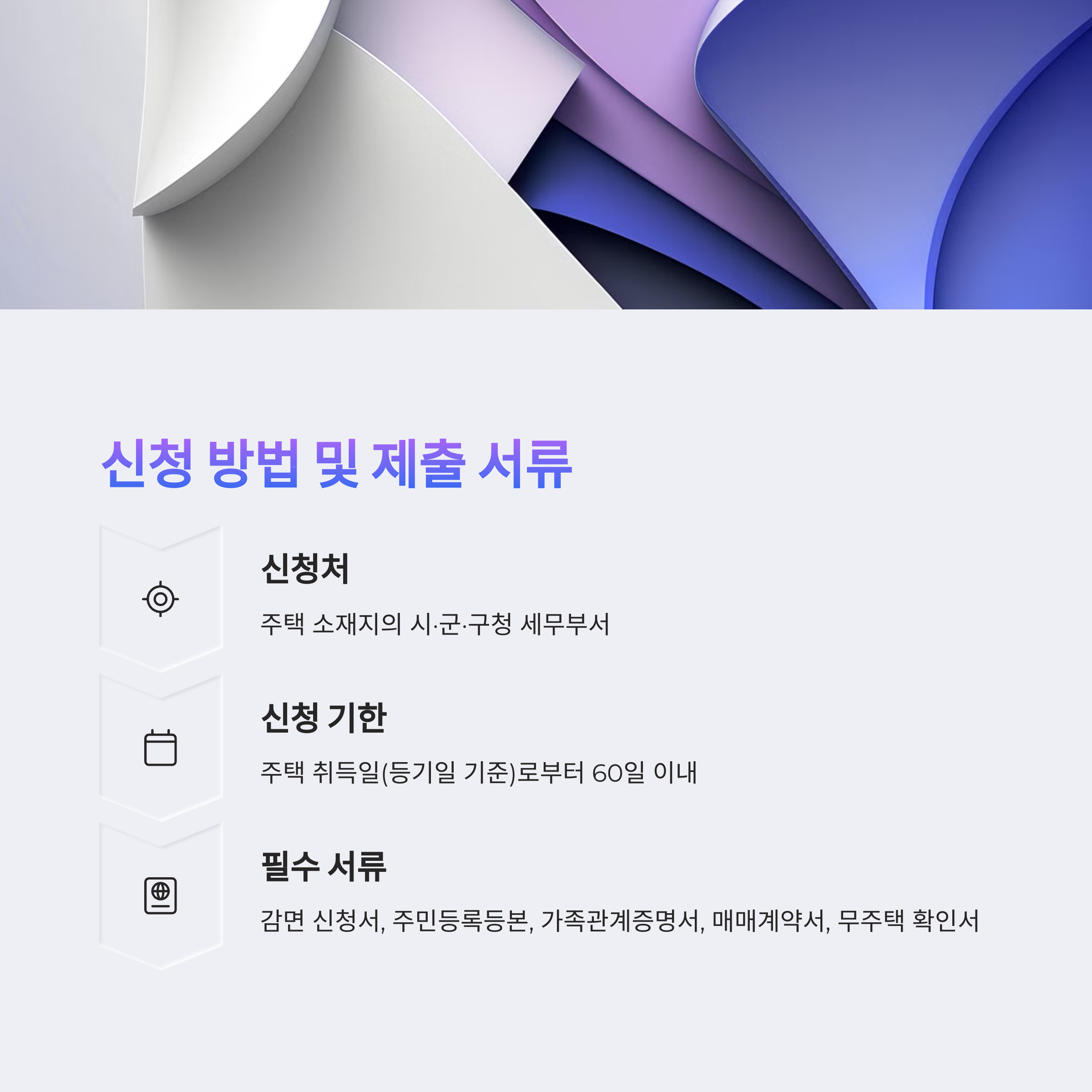 - 신청처: 주택 소재지의 시·군·구청 세무부서