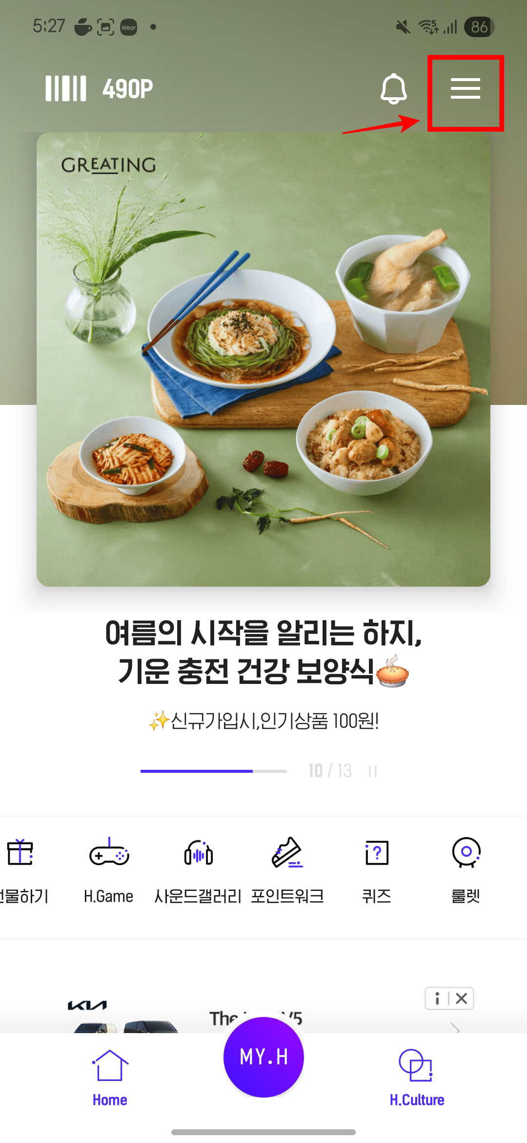 - H포인트 발급 코드 입력 → 3만 원 상당 포인트 추가
