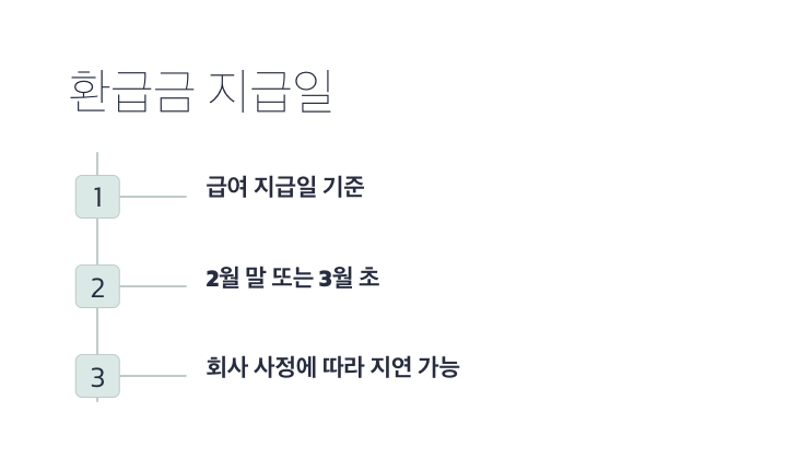 🔹 💡 참고: 회사의 자금 사정에 따라 환급금 지급이 늦어질 수도 있으니, 급여 지급일을 기준으로 확인하는 것이 좋습니다.