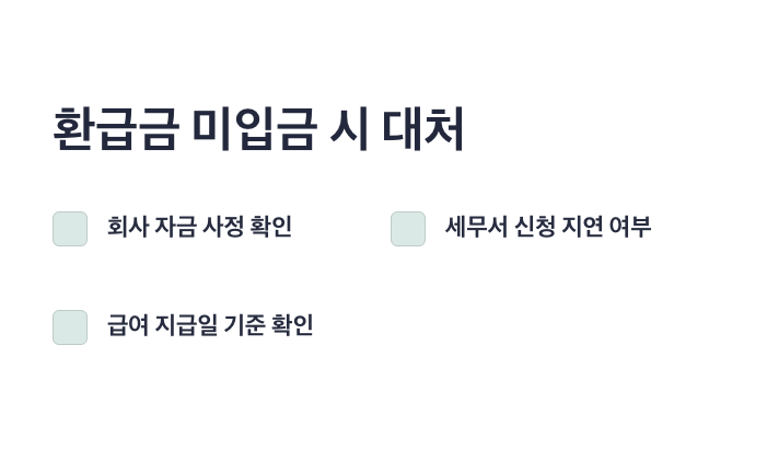 - 회사 사정에 따라 별도 지급 → 세무서를 통해 환급금 신청 후 지급 (지연 가능)