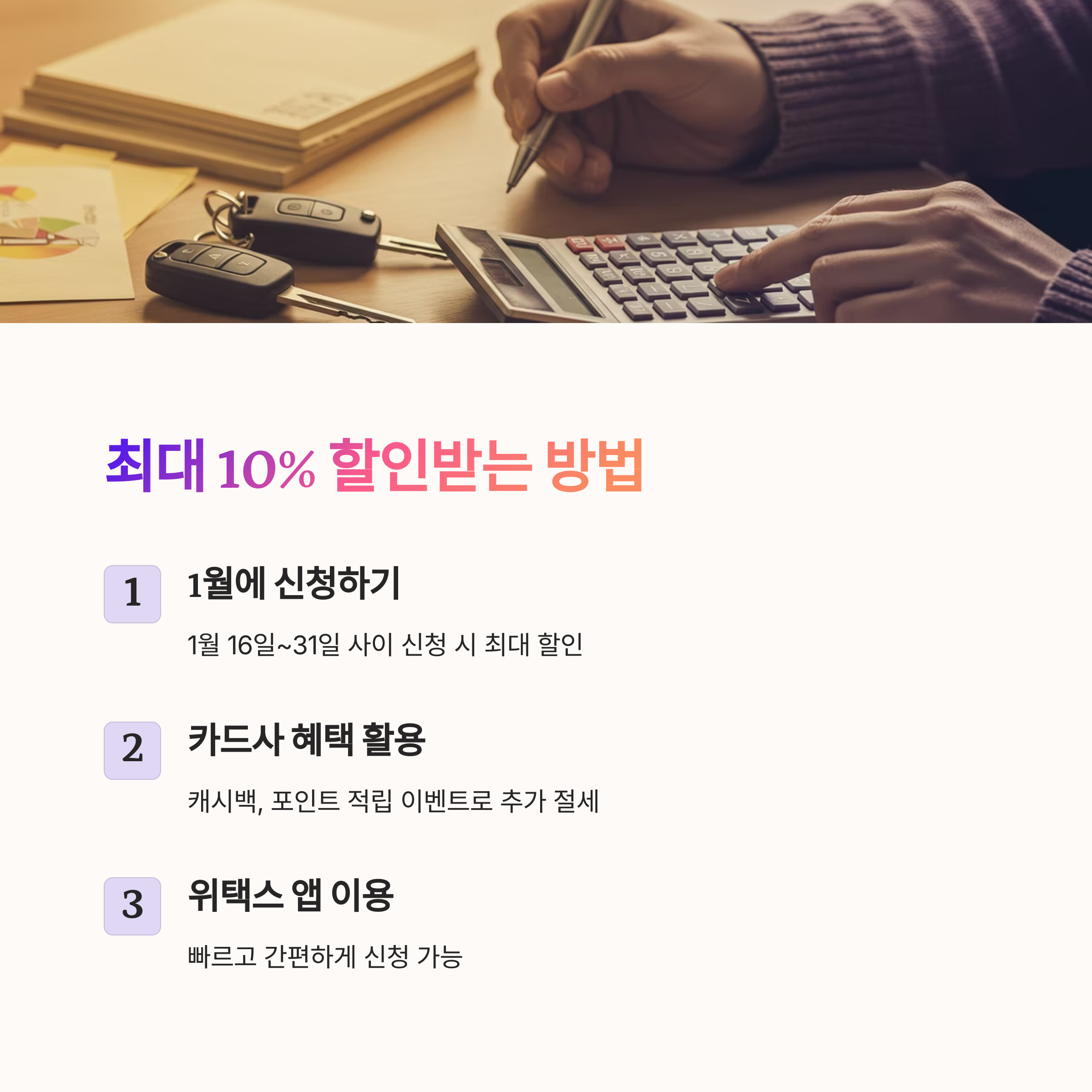자동차세 연납신청으로 최대 할인을 받으려면 1월에 신청하는 것이 가장 유리합니다. 카드사 혜택을 활용하면 추가 절세도 가능합니다.
