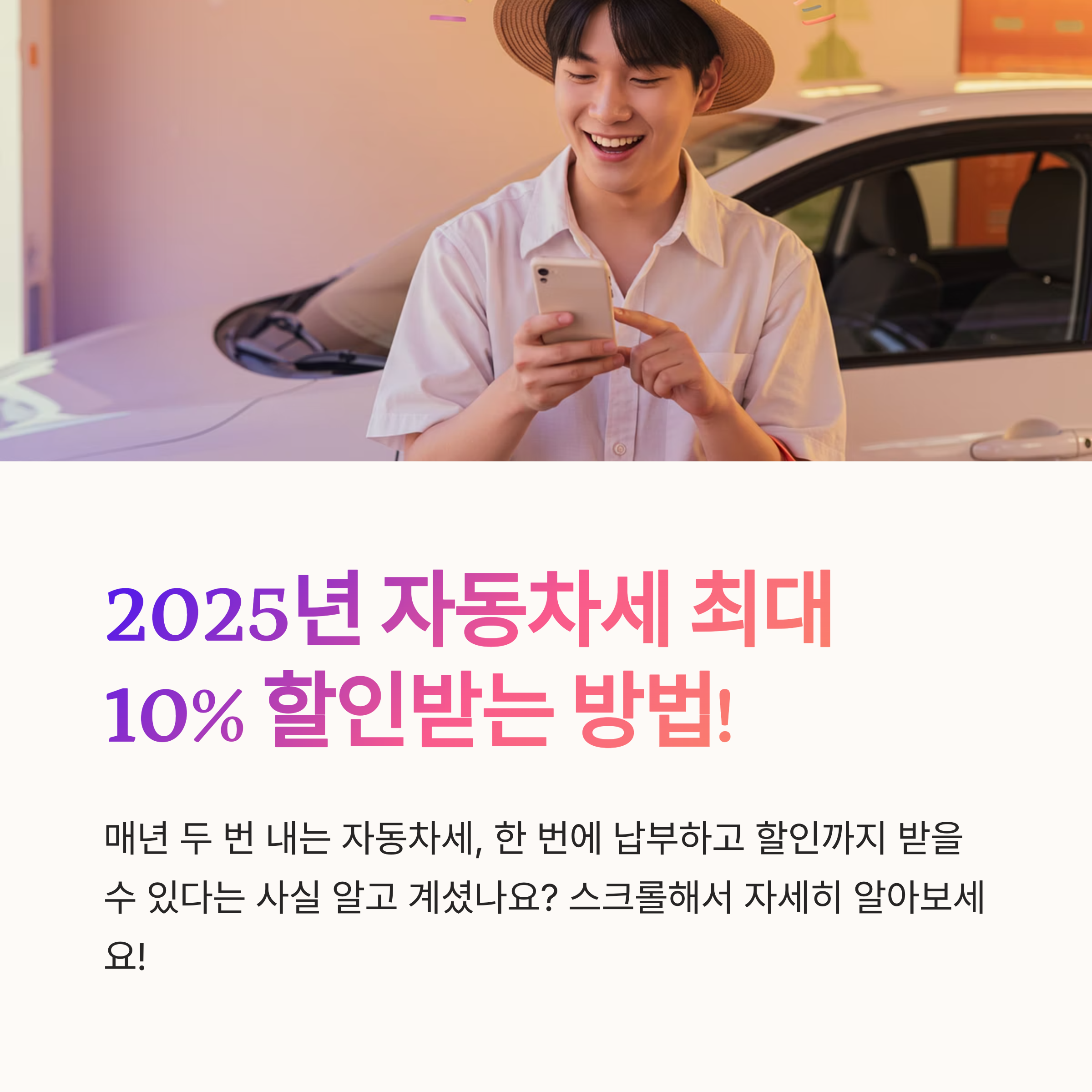 자동차세, 매년 두 번씩 내기 번거로우셨죠? 하지만 2025년에도 자동차세 연납신청 제도를 활용하면 연초에 한 번만 납부하고 최대 10% 할인 혜택까지 받을 수 있다는 사실, 알고 계셨나요?