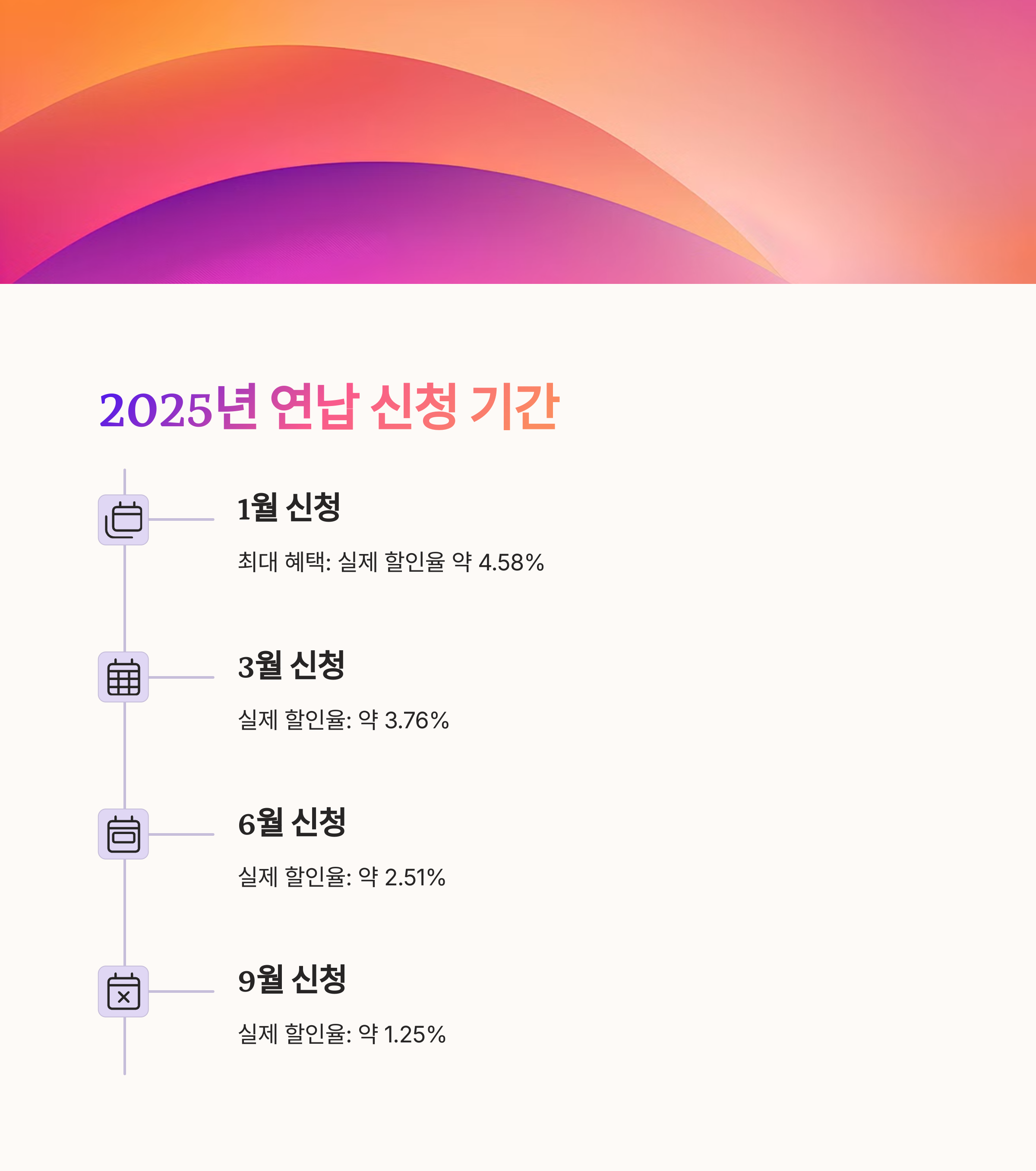 | 신청 시기 | 명목 할인율 | 실제 할인율(적용 기간 기준) |