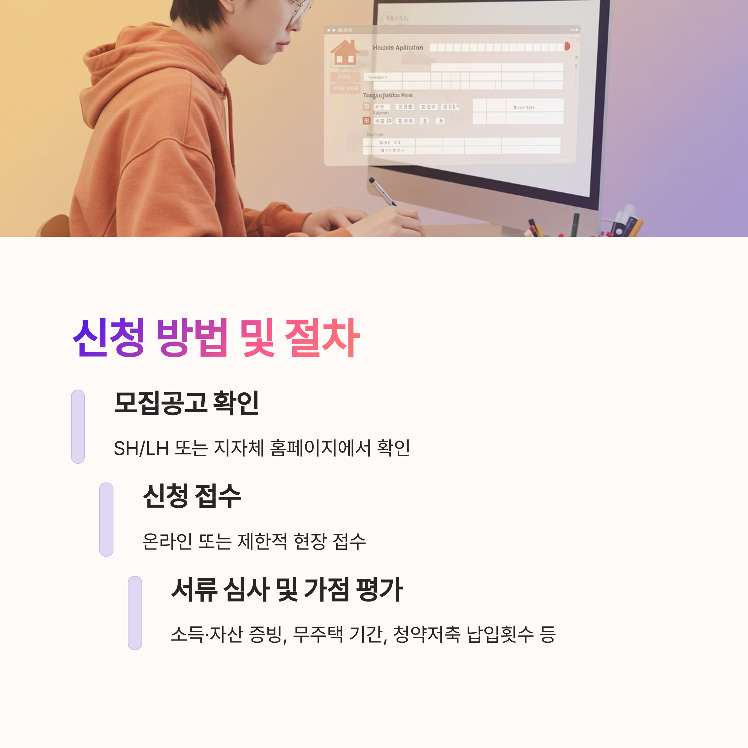 - 모집공고 확인: SH/LH 또는 지자체 홈페이지