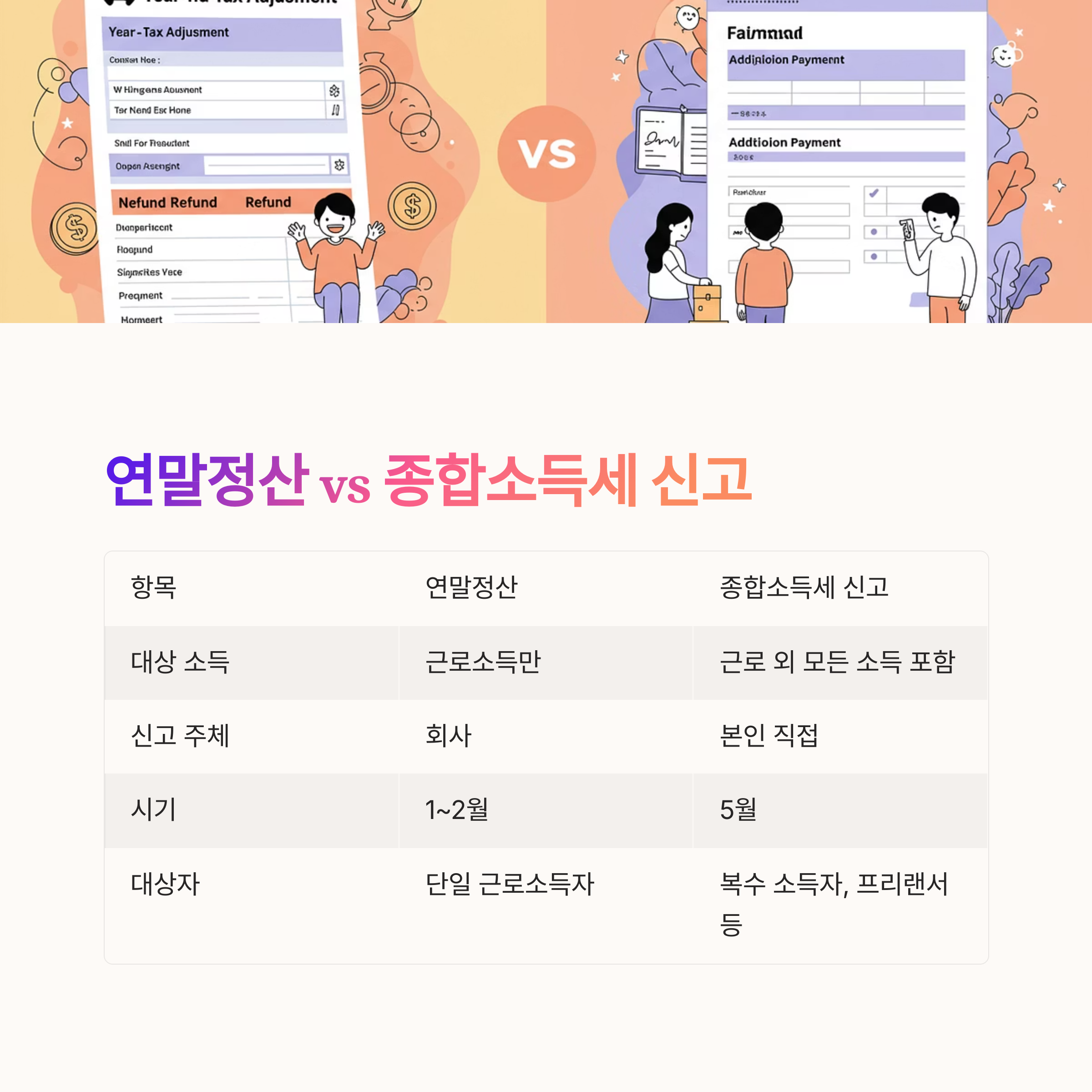 | 항목 | 연말정산 | 종합소득세 신고 |