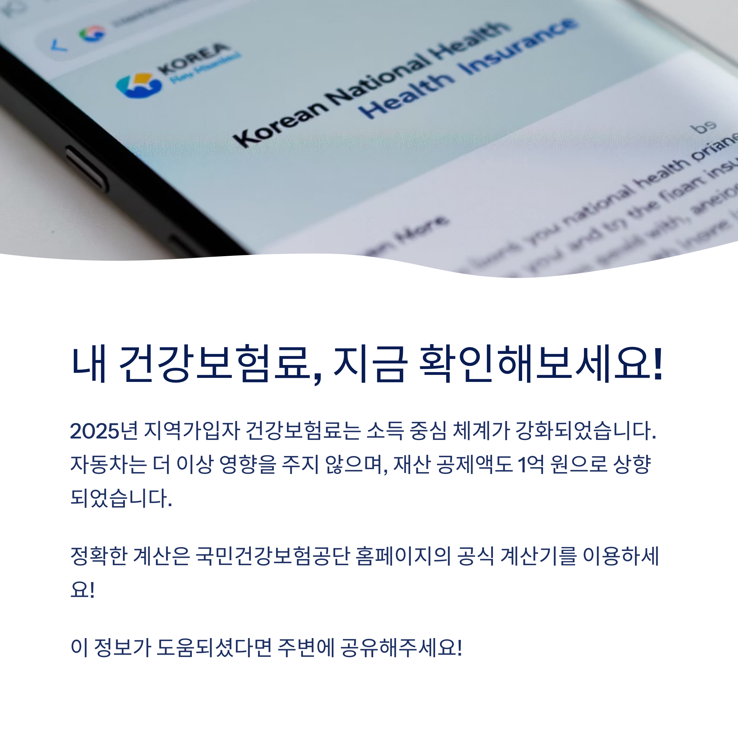 2025년 지역가입자 건강보험료 계산 방법 총정리 (자동차 항목 폐지, 소득·재산 기준 반영)