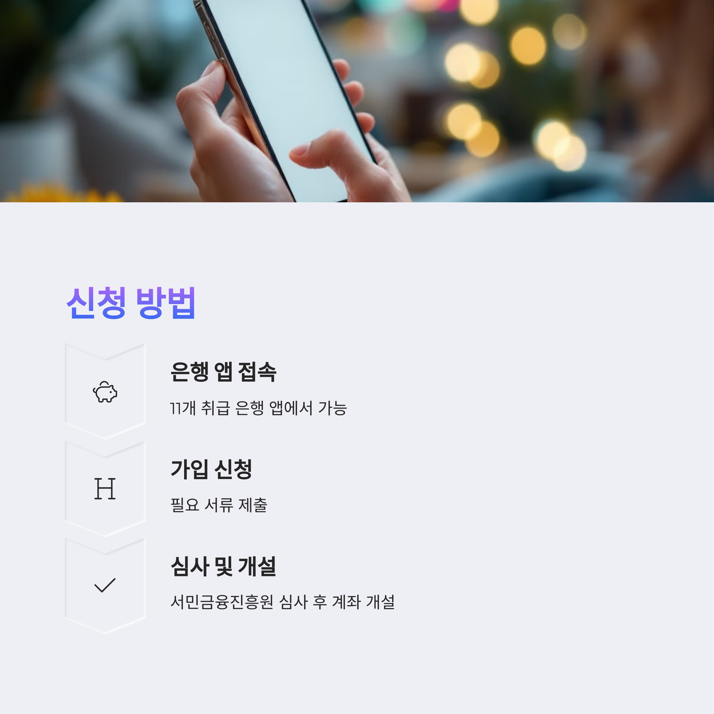 - 청년도약계좌를 취급하는 11개 은행 앱(국민, 신한, 농협 등)에서 비대면 신청 가능