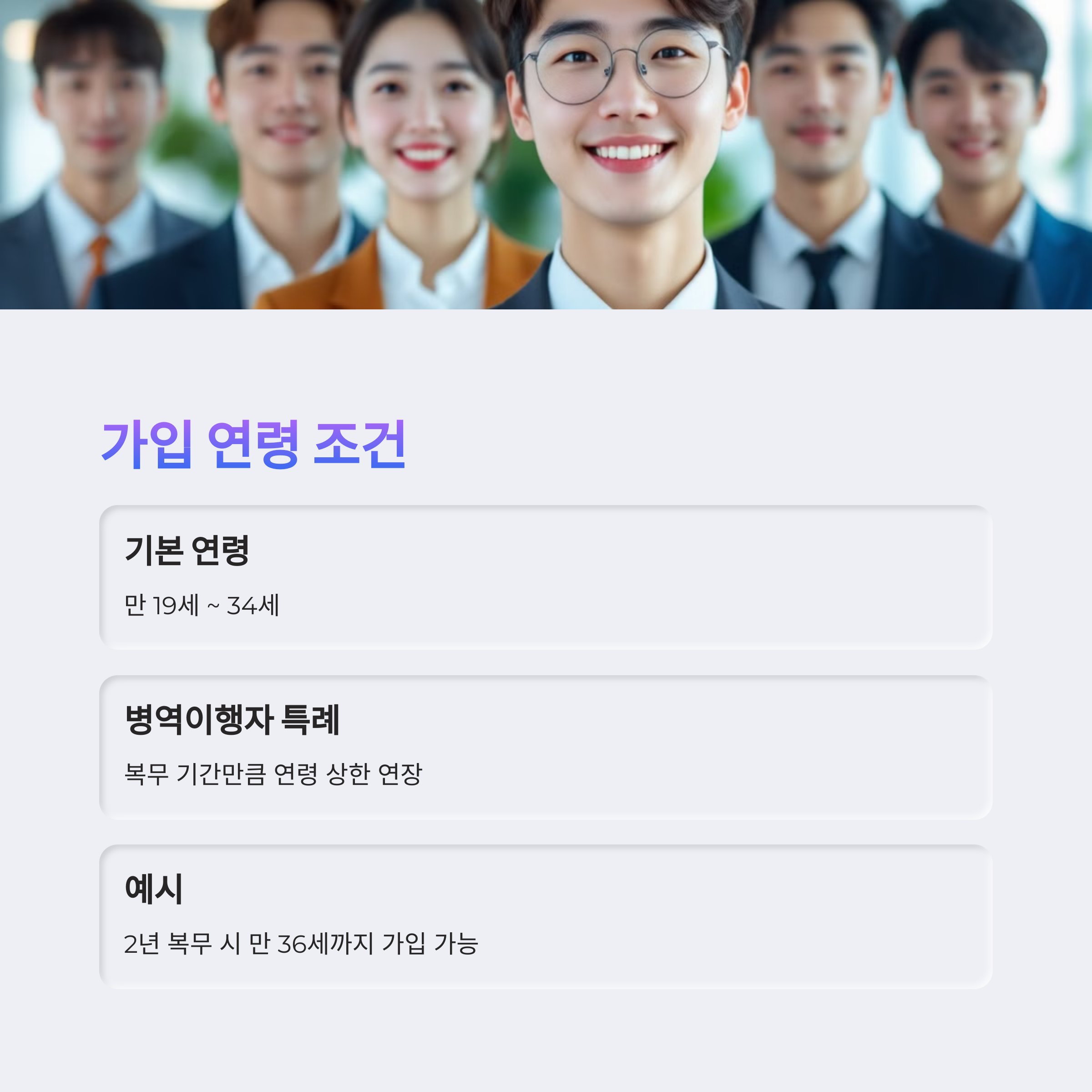 (예: 2년 복무 시 만 36세까지 가입 가능)