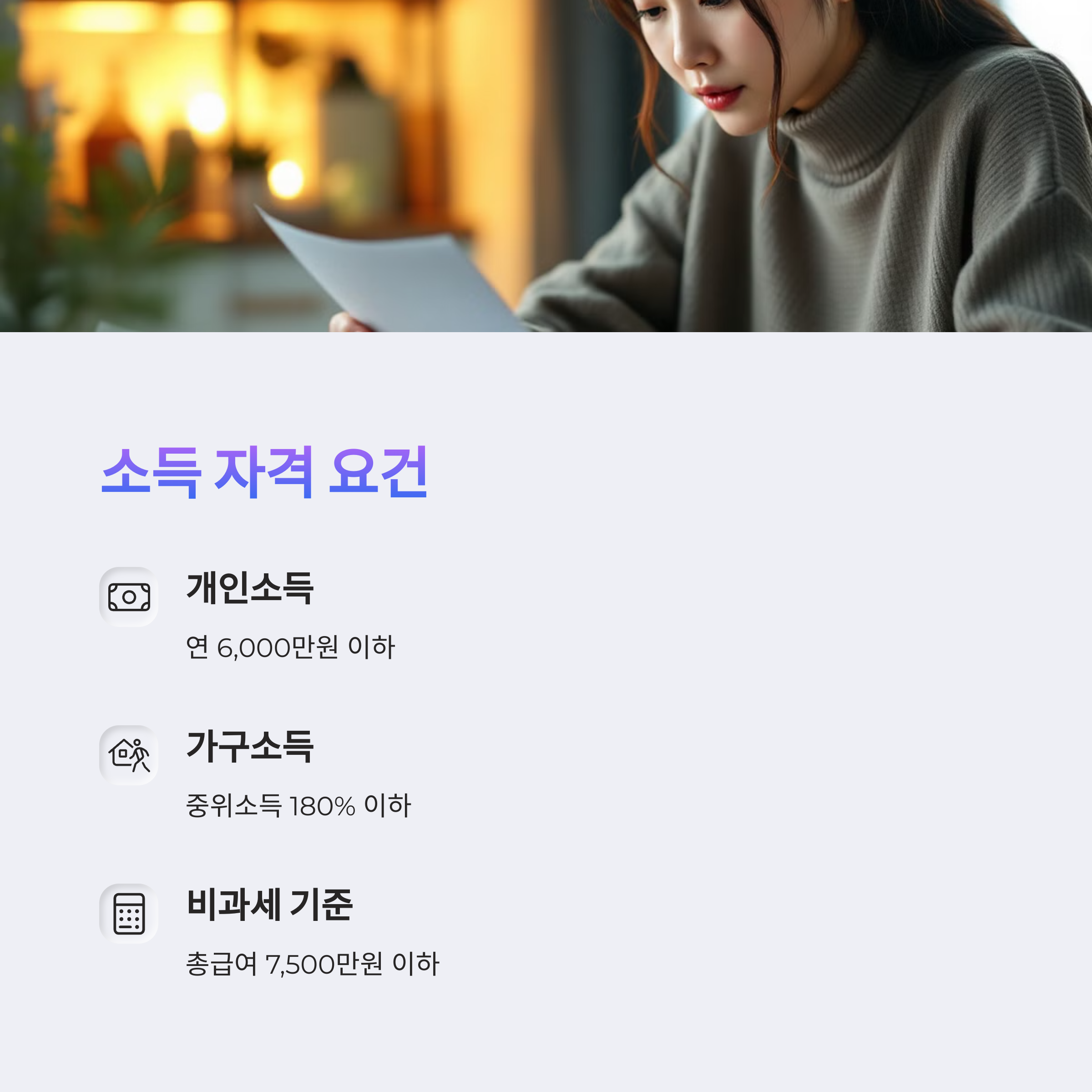 - 개인소득: 연 6,000만 원 이하