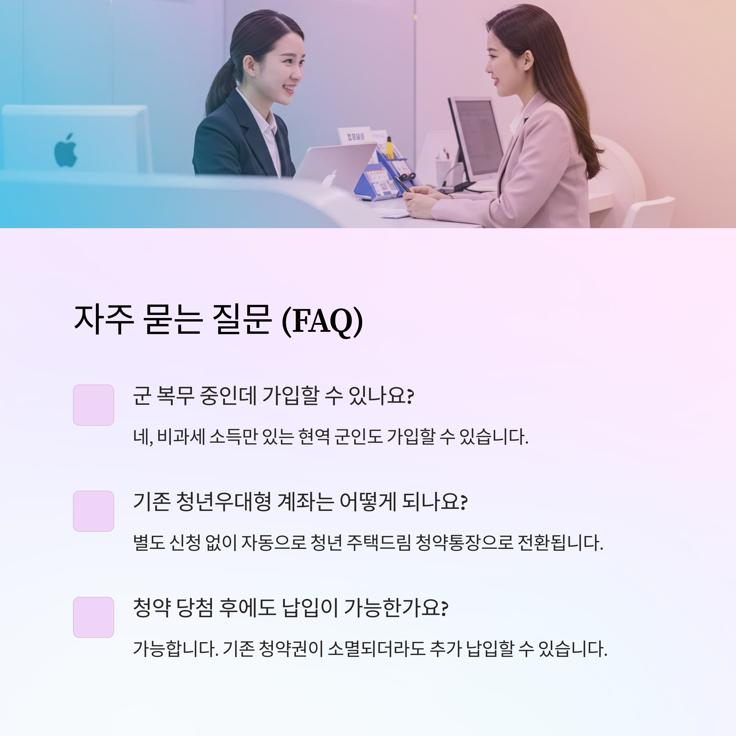 - 기존 청년우대형 주택청약종합저축 가입자 : 별도 전환 신청 필요 없음