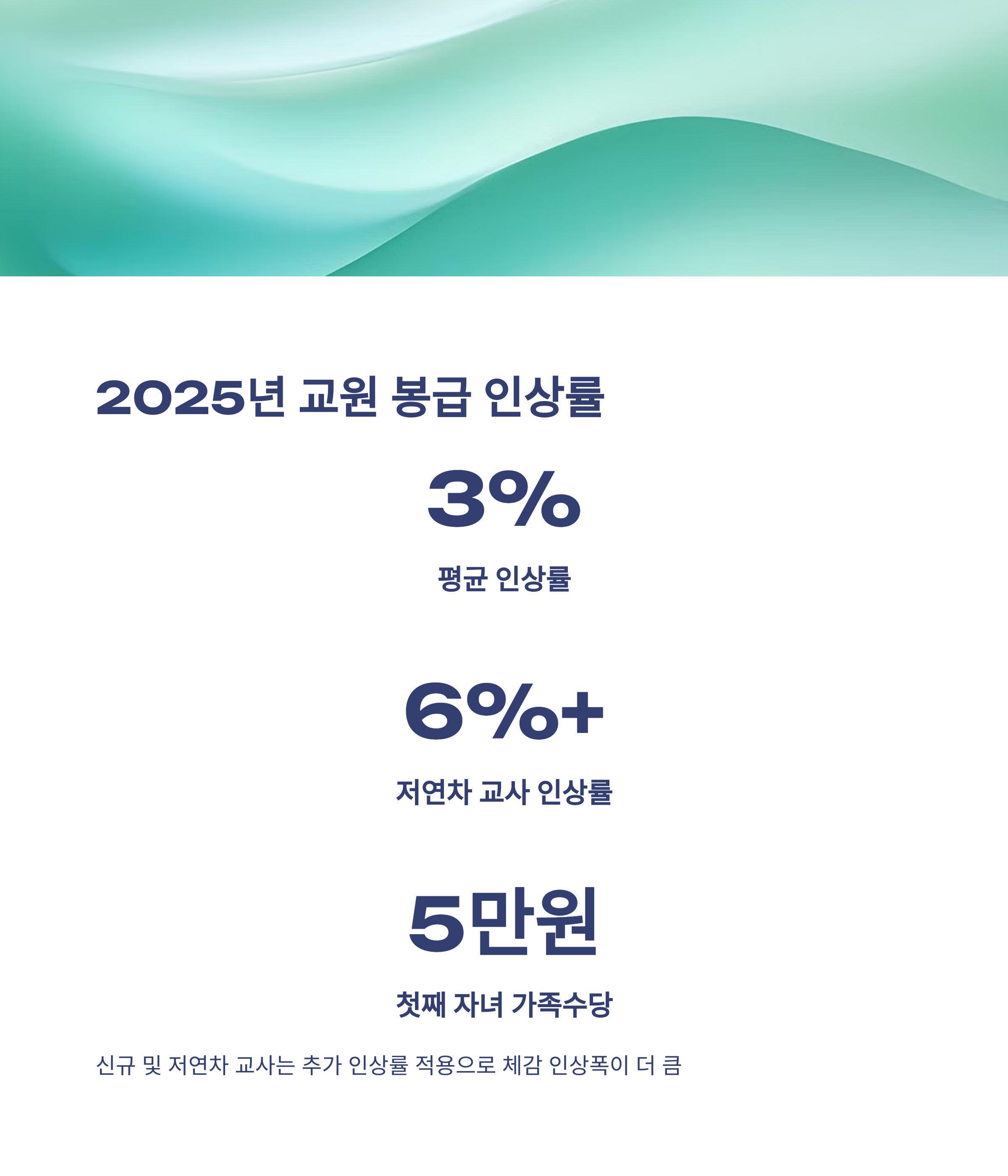- 신규 및 저연차 교사는 추가 인상률 적용으로 체감 인상폭이 더 큼