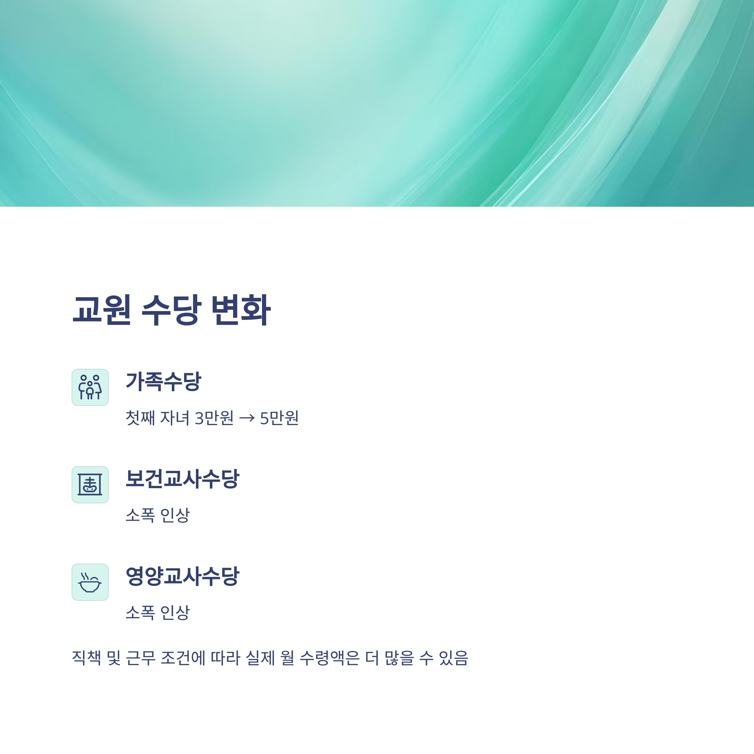 - 보건교사수당, 영양교사수당 등도 소폭 인상