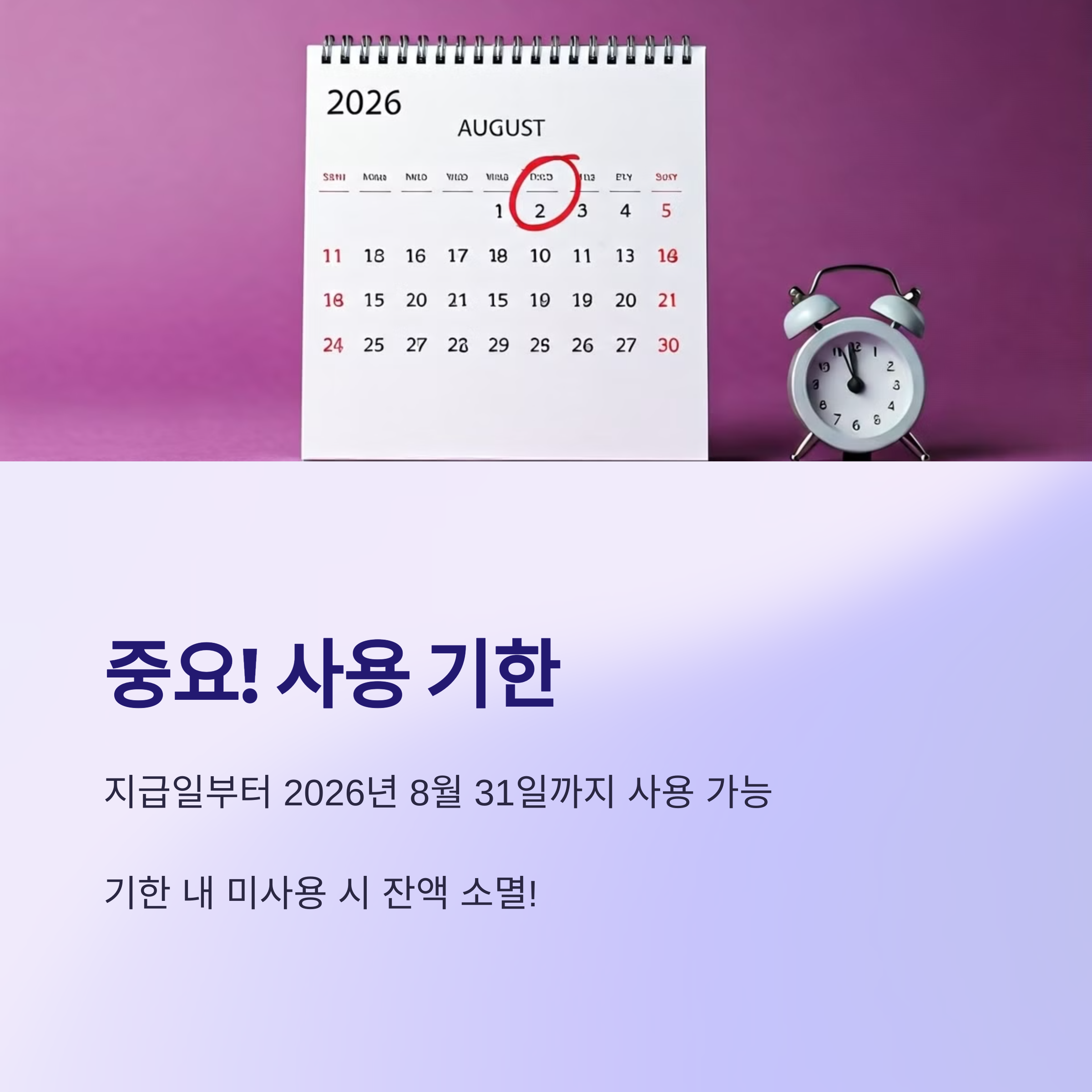 - 지급일 ~ 2026년 8월 31일까지 사용 가능