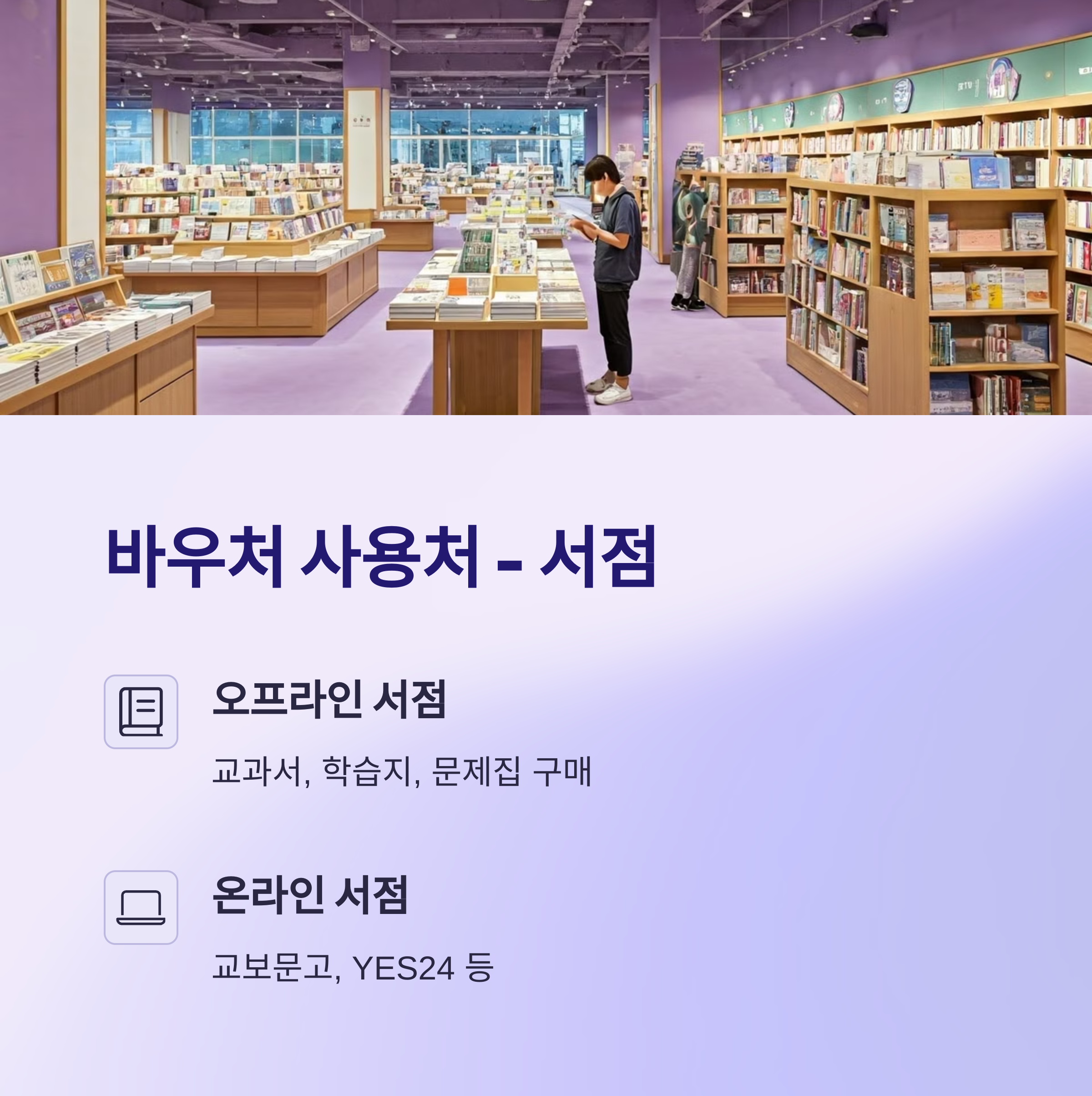 - 사용처: 서점, 학원, 온라인 강의, 문구, 전자기기 등
