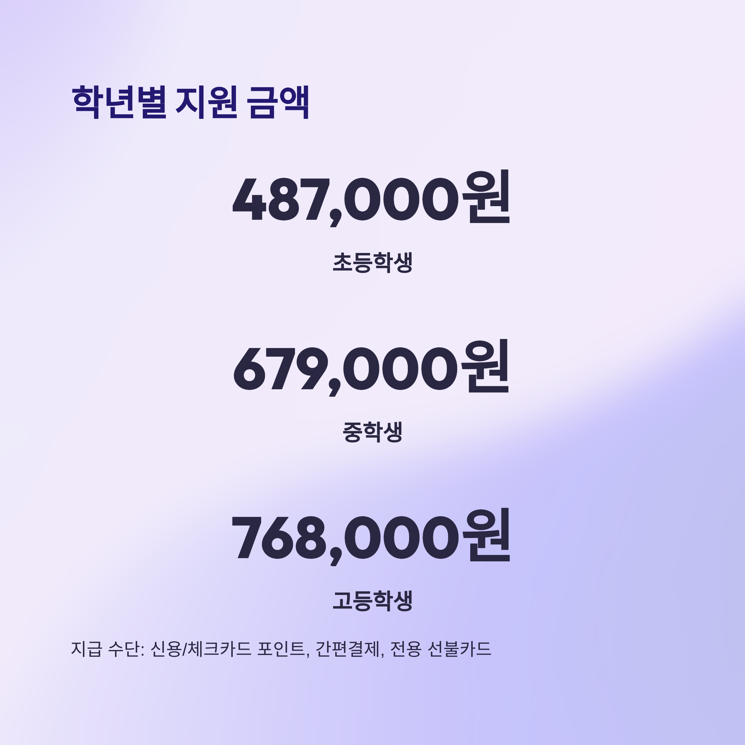 | 학년별 | 최대 지원 금액 |
