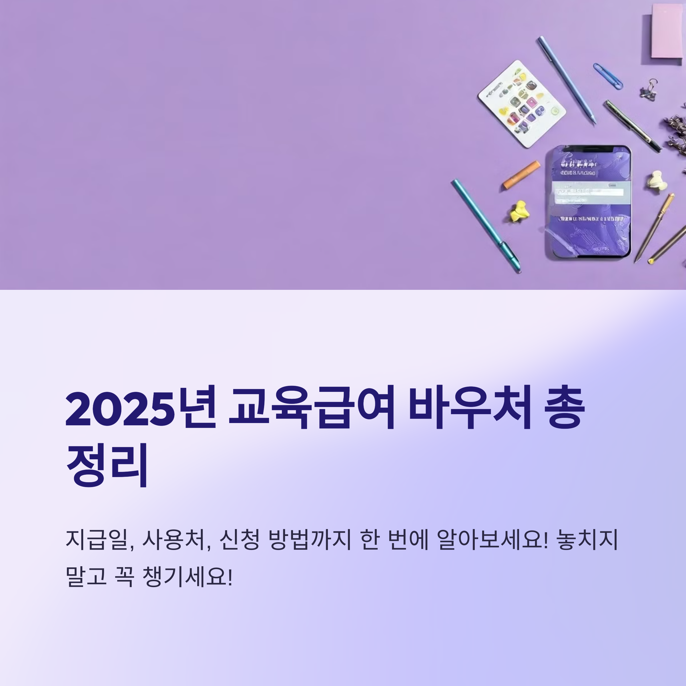 2025년 교육급여 바우처, 언제 어떻게 받을 수 있을까요? 이 글에서는 지급일, 사용처, 신청 방법, 주의사항까지 한 번에 정리해 드립니다. 놓치지 말고 꼭 챙기세요!