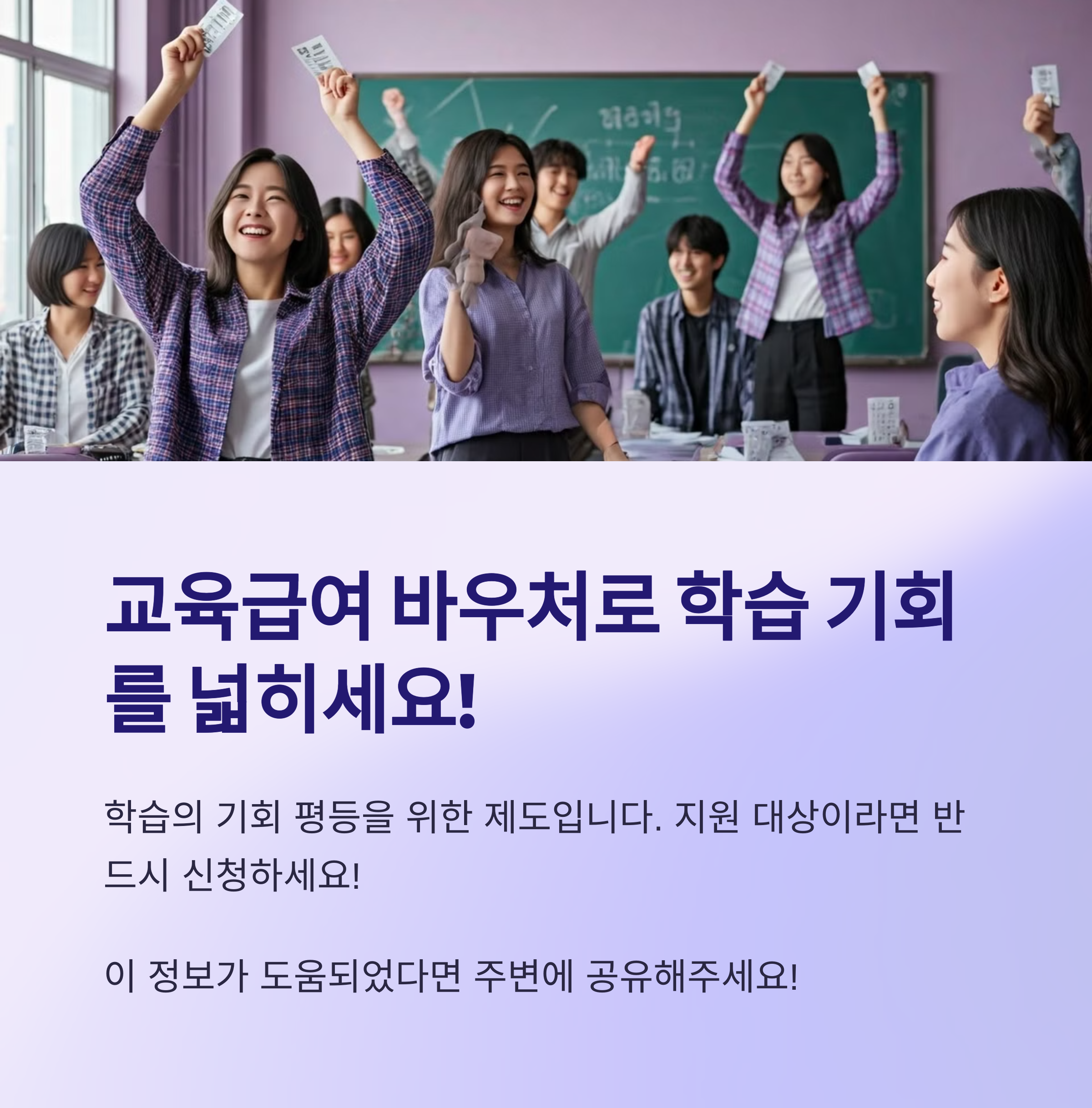 📌 교육급여 바우처는 학습의 기회 평등을 위한 제도입니다. 지원 대상이라면 반드시 신청하세요!