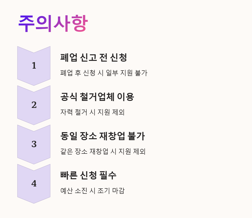 ⚠ 동일 장소에서 재창업 시 지원 불가!