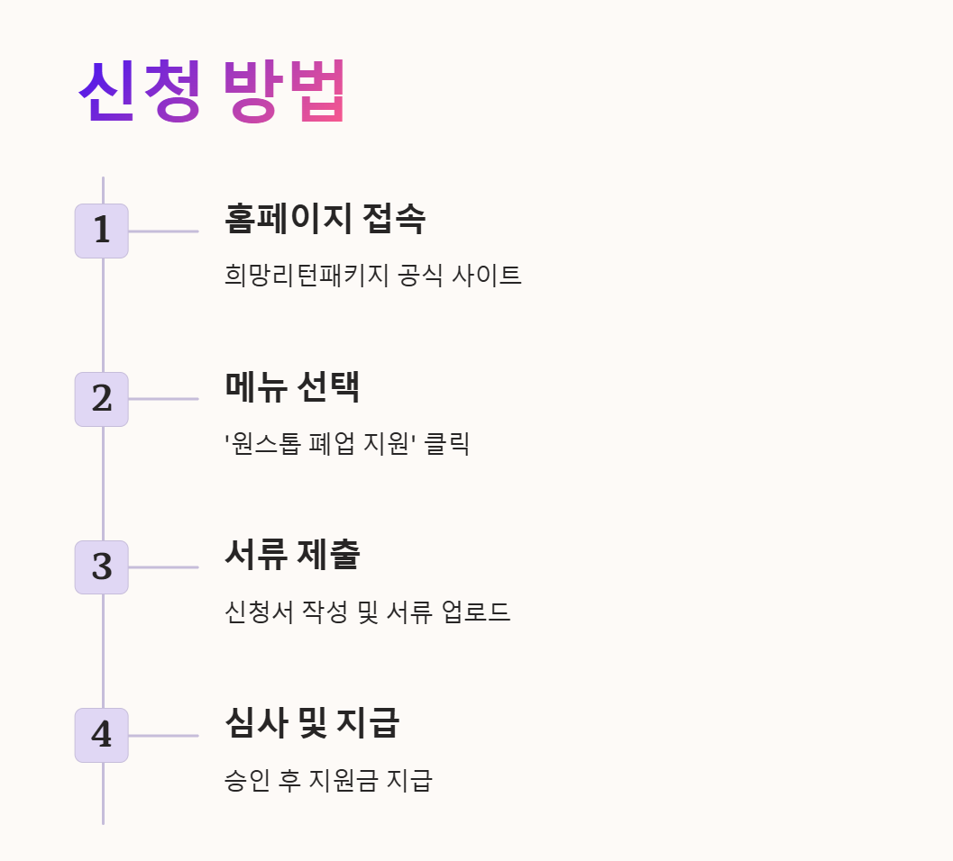 소상공인 희망리턴패키지는 단순한 폐업 지원이 아닌, 폐업 후 재도약을 돕는 맞춤형 지원 프로그램입니다.